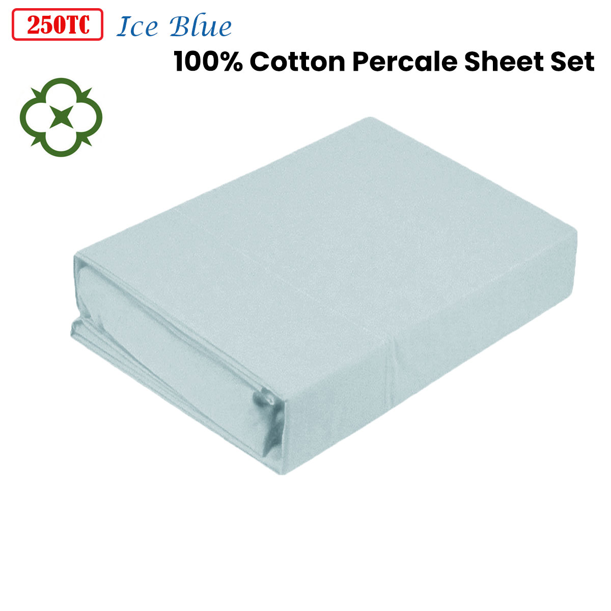 Kingtex 250TC 100% Cotton Percale Sheet Set Ice Blue Single