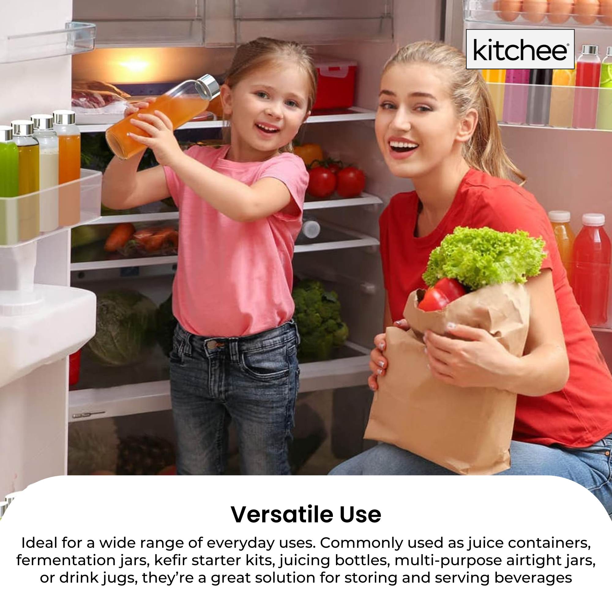 - Versatile Use – Ideal for a wide range of everyday uses. Commonly used as juice containers, fermentation jars, kefir starter kits, juicing bottles, multi-purpose airtight jars, or drink jugs, they’re a great solution for storing and serving beverages