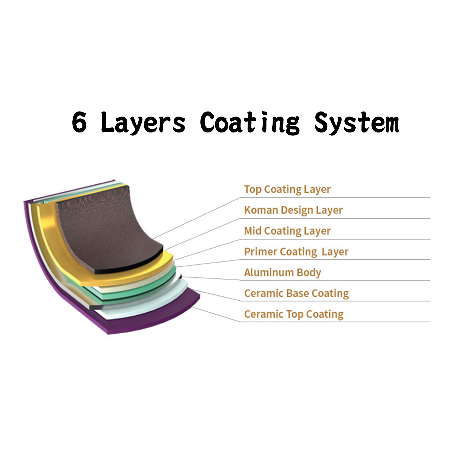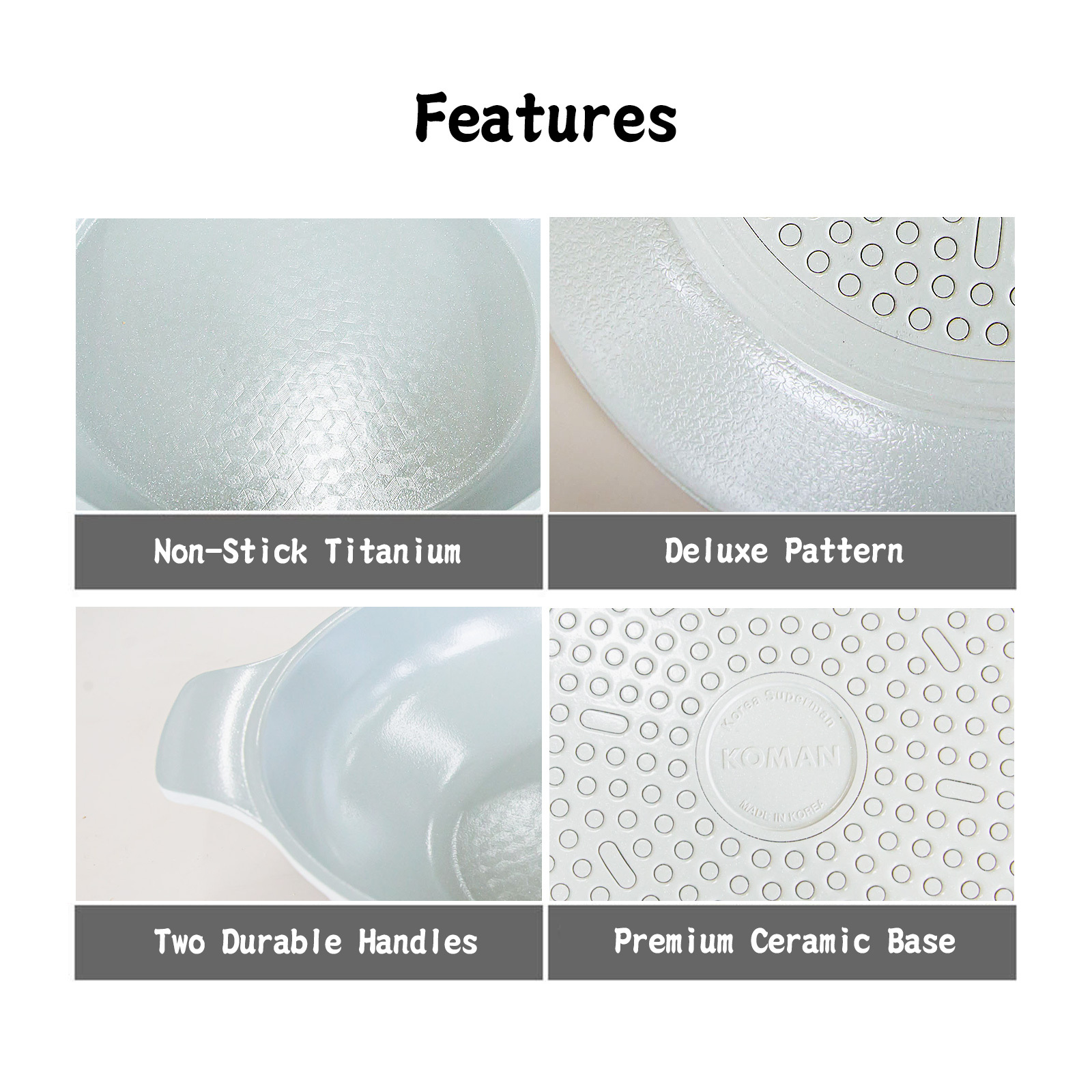 Internal and external 6 layers coating – Reinforced with a strong and robust titanium coating for heavy non-stick black coating, reducing the frictional force of the coating surface for excellent coating and cleaning power. The release of the raw infrared radiation gives the deep flavor of the dish.