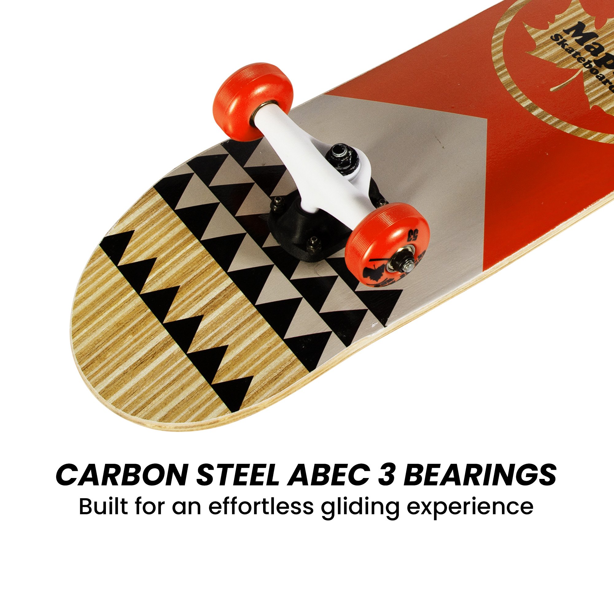 Shred like a seasoned pro with the Maple TGT Maple Masters 31in Skateboard! Crafted with a 9 ply birch/split cross-grain laminated deck, this board offers durability and stability for your sick tricks. Stand out with its top graphic featuring a clear spray and black grip tape. Glide smoothly on injected polyurethane wheels with traction grooves, powered by carbon steel bearings for an exhilarating ride every time.