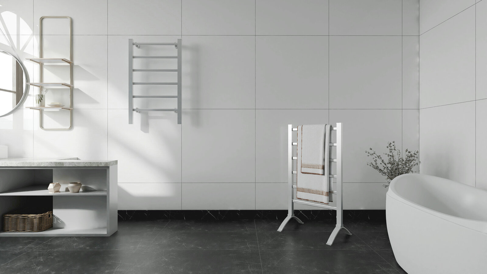 Kylin 2 In 1 Electric Towel Warmer realize heating up as fast as 3 minutes, warm your towel or clothing during any time. It can work as a free-standing rack or hanging on the wall, easy to install. Just plugin and it will be ready to use. It is made of anti-corrosion aluminum and its switch is in level IPX4 Water Resistance, no worries about installation in the bathroom. It is designed to stay constantly at 45- 55 degrees, giving you a warm, dry, and fluffy towel after each shower on a cold wintery day.