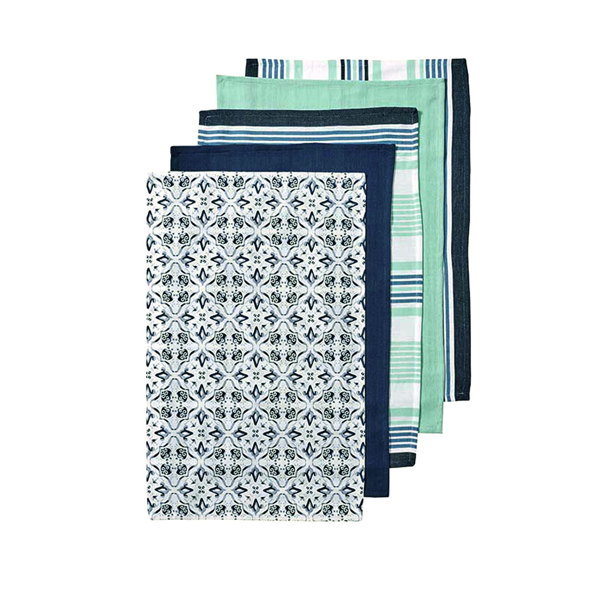 Ladelle Tile Set of 5 Cotton Kitchen Towels Navy