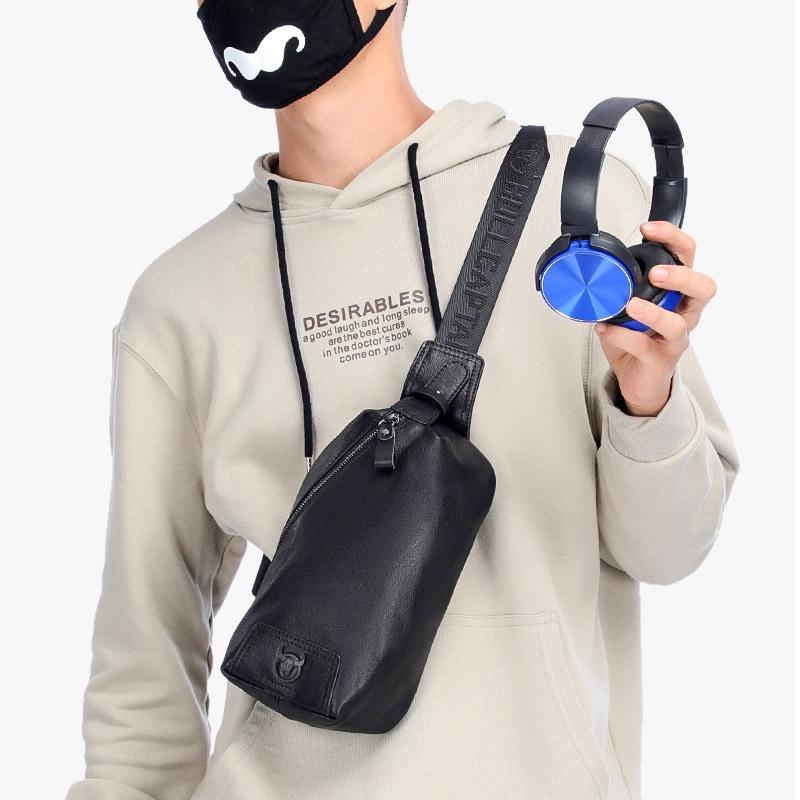 • Large capacity chest bag made of top layer cowhide and mercerized cotton