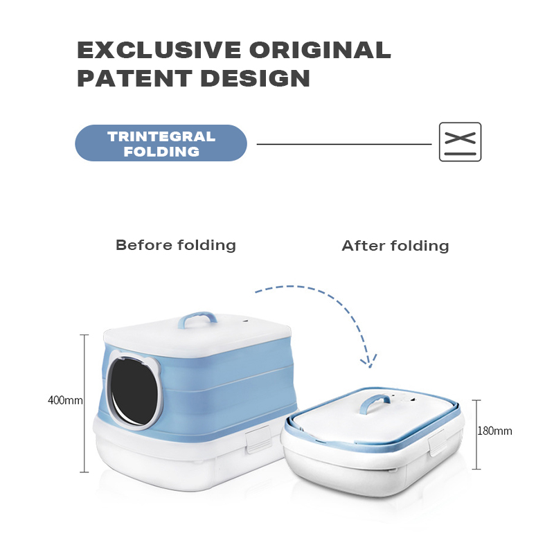 - Foldable and Portable: The foldable design of the litter box makes installation and dismantling more portable, more space-saving and compact compared to ordinary litter boxes, which gives you the convenience of taking it with you when you are out and about, giving your cat a suitable shelter and litter box to use at all times.