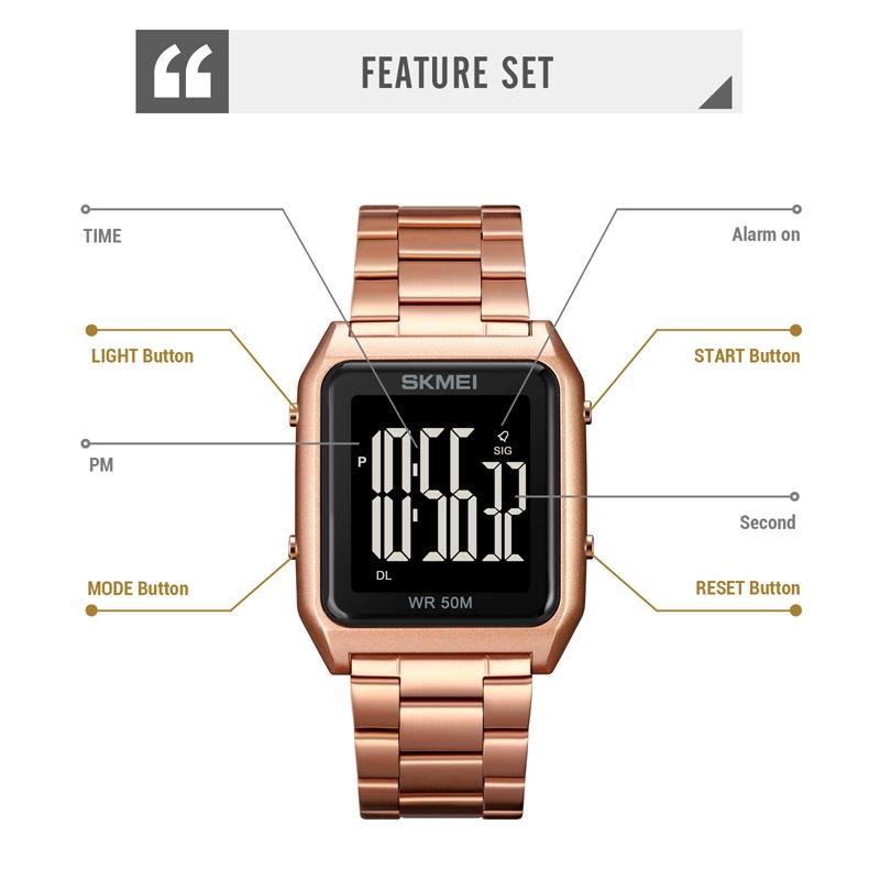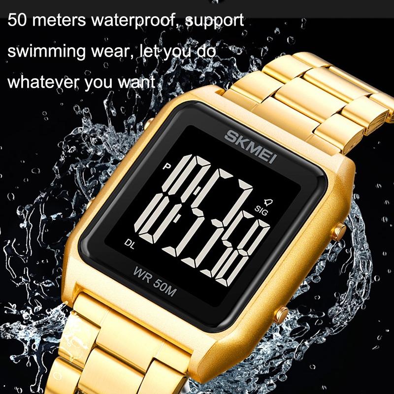 • 1 x 1879 Square Large Screen Men Steel Belt Multi-Function El Luminous Watch Black White Machine