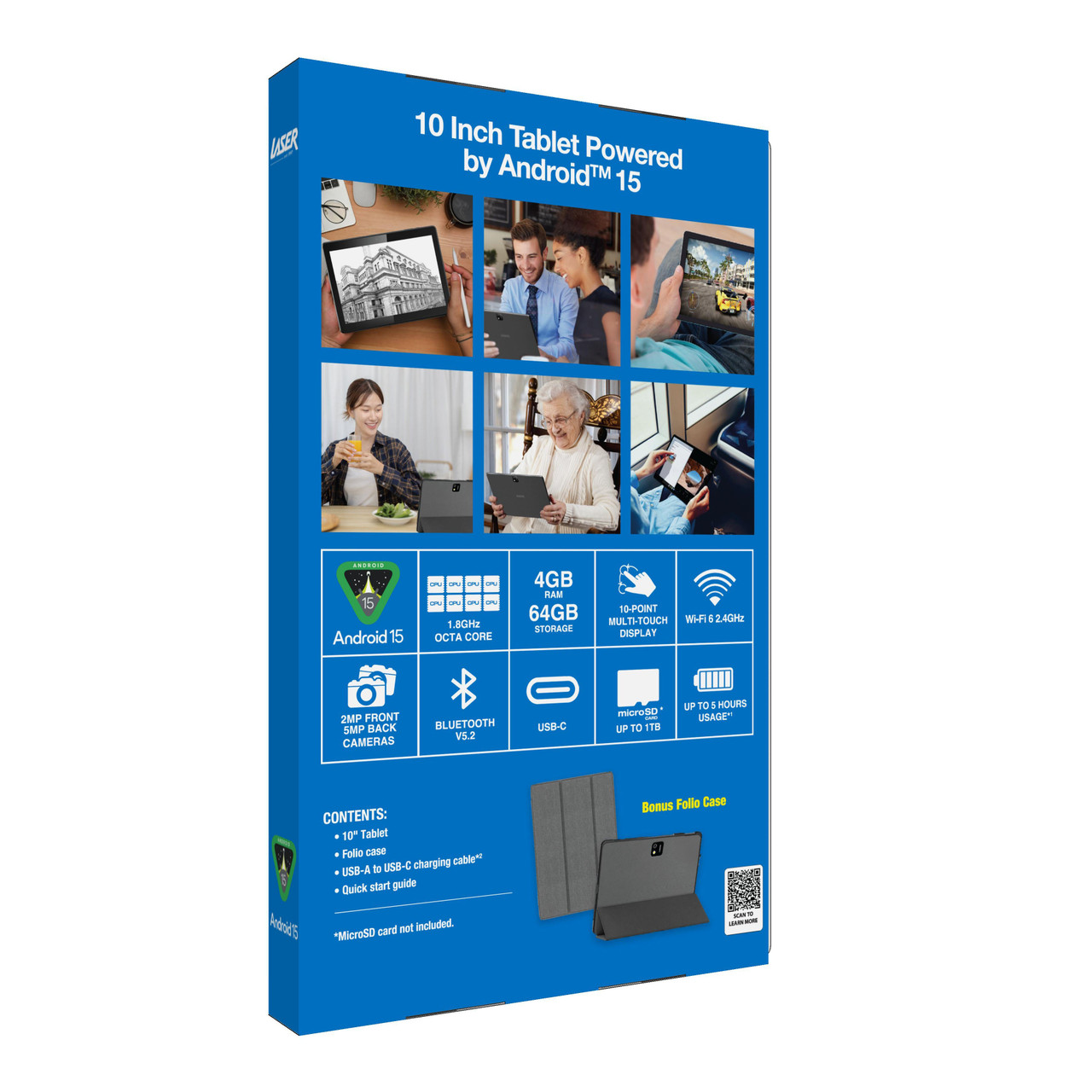Work and play with the Laser 10-inch Android 15 Tablet.