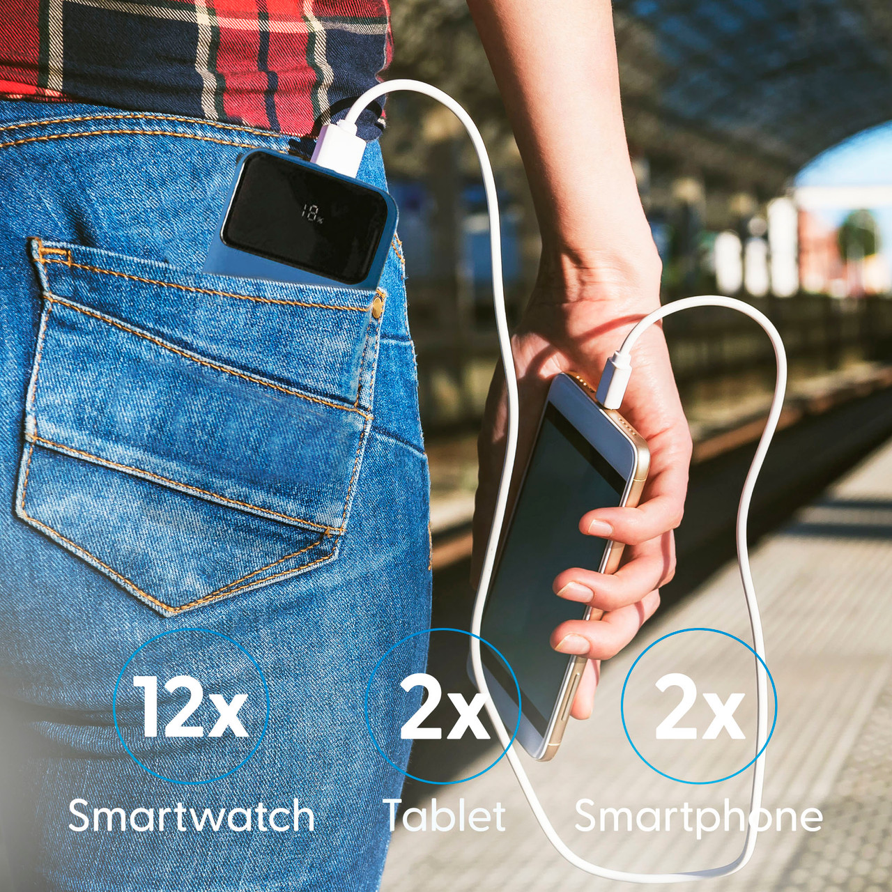 - 10000mAh Capacity: Recharge your smartphone up to two times, a smartwatch up to 16 times, or a tablet up to two times.*