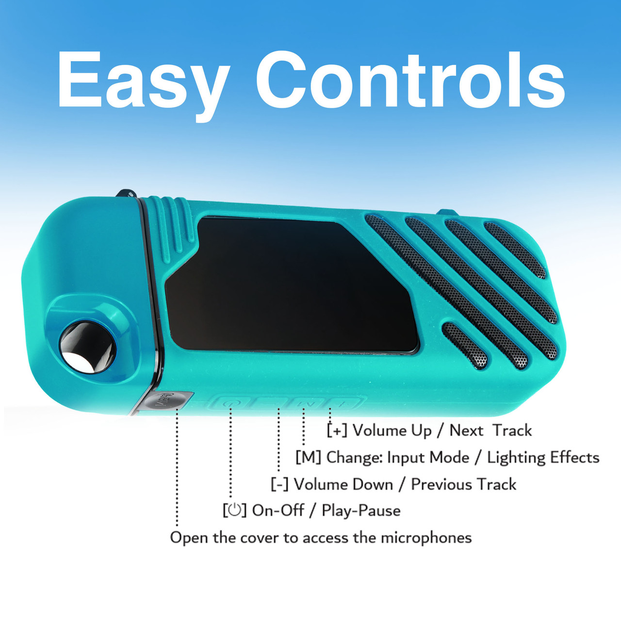 Sing, stream, and shine with the Laser Portable Karaoke Speaker Aquatic Awe powerful sound, dual wireless microphones, and a vibrant LED display come together for the ultimate entertainment experience.