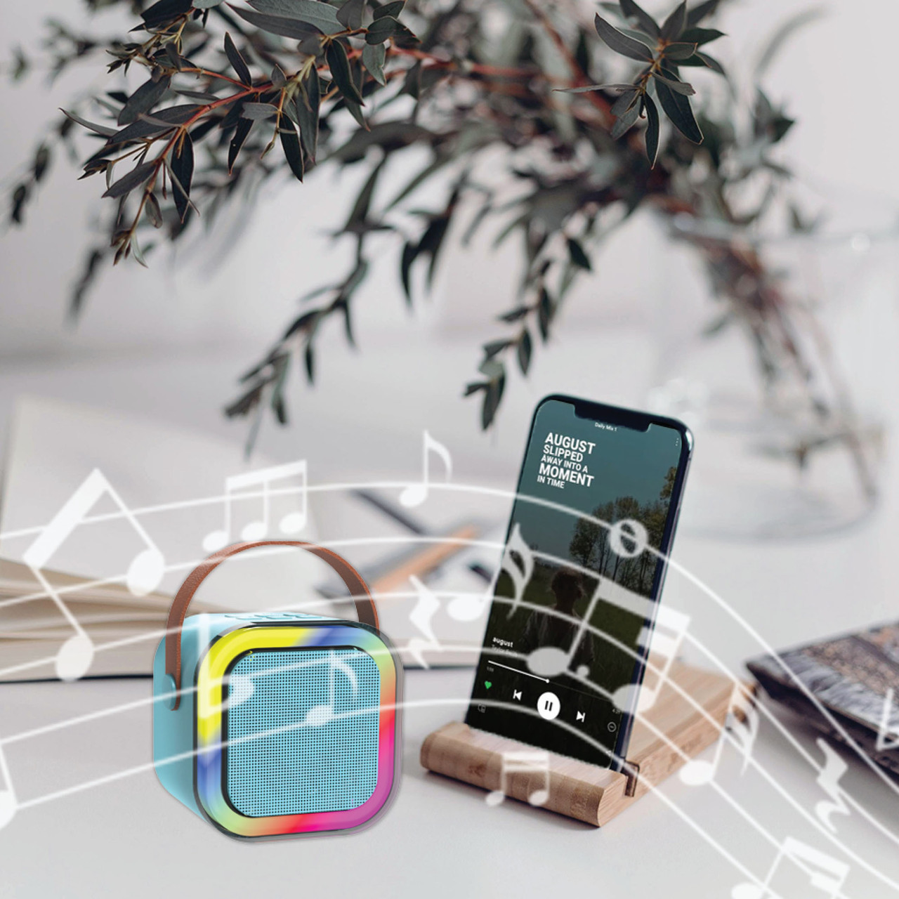 Make every occasion memorable with the Laser Mini Karaoke Speaker and its two wireless microphones!