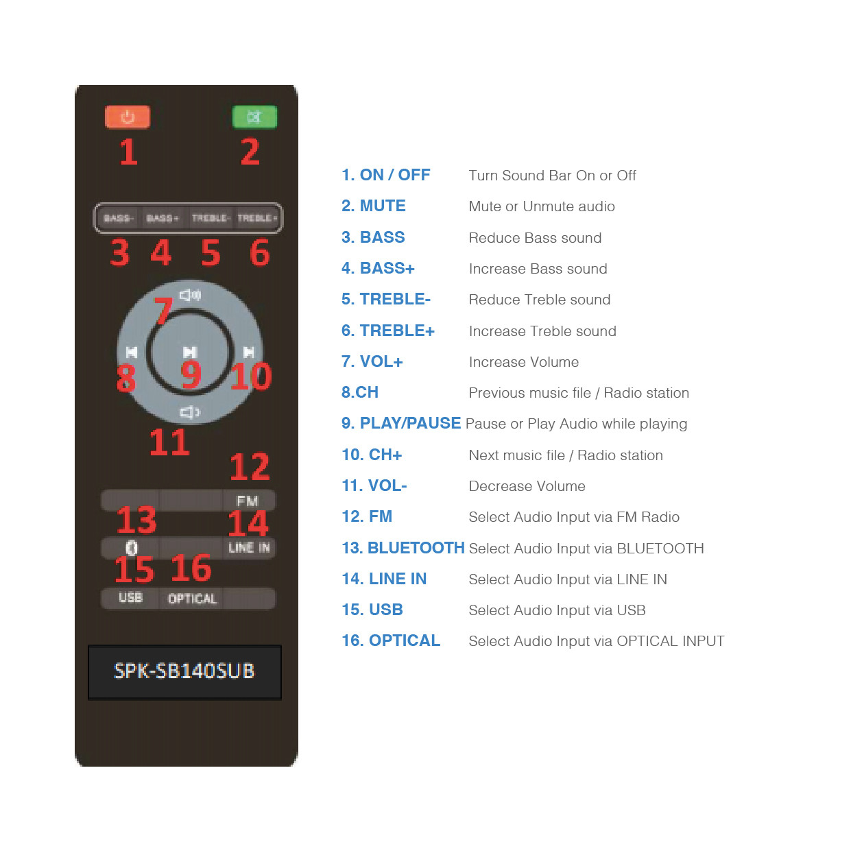 - 2 channel stereo Full-range speakers in the soundbar produces left and right stereo sound