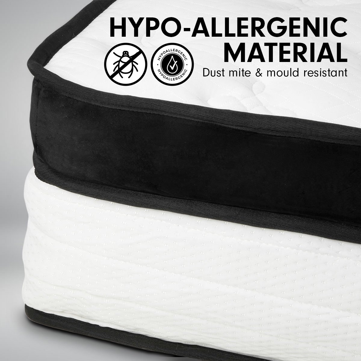 - Hypo-allergenic material – dust mite & mould resistant