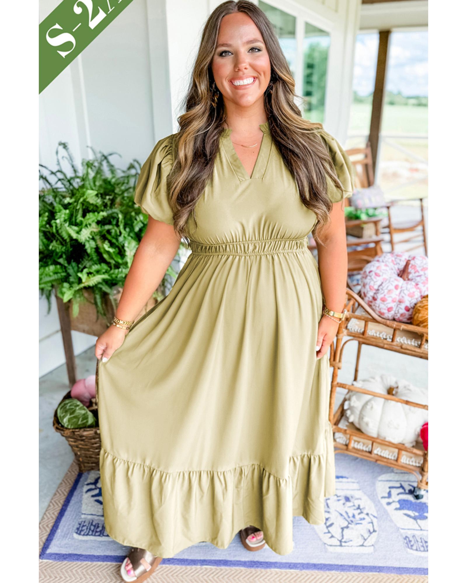 Laurel Green Notched V Neck Puff Sleeve Tiered Plus Size Maxi Dress – 3X