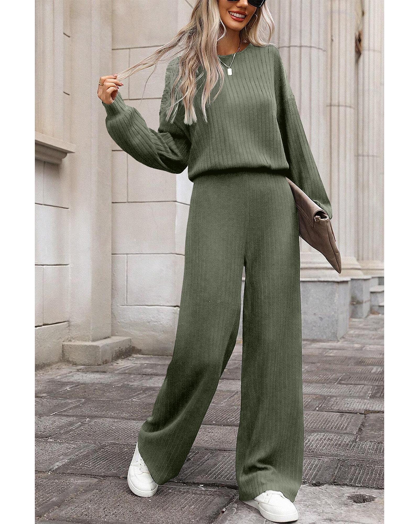 Laurel Green Solid Ribbed Knit Keyhole Back High Waist Jumpsuit – L