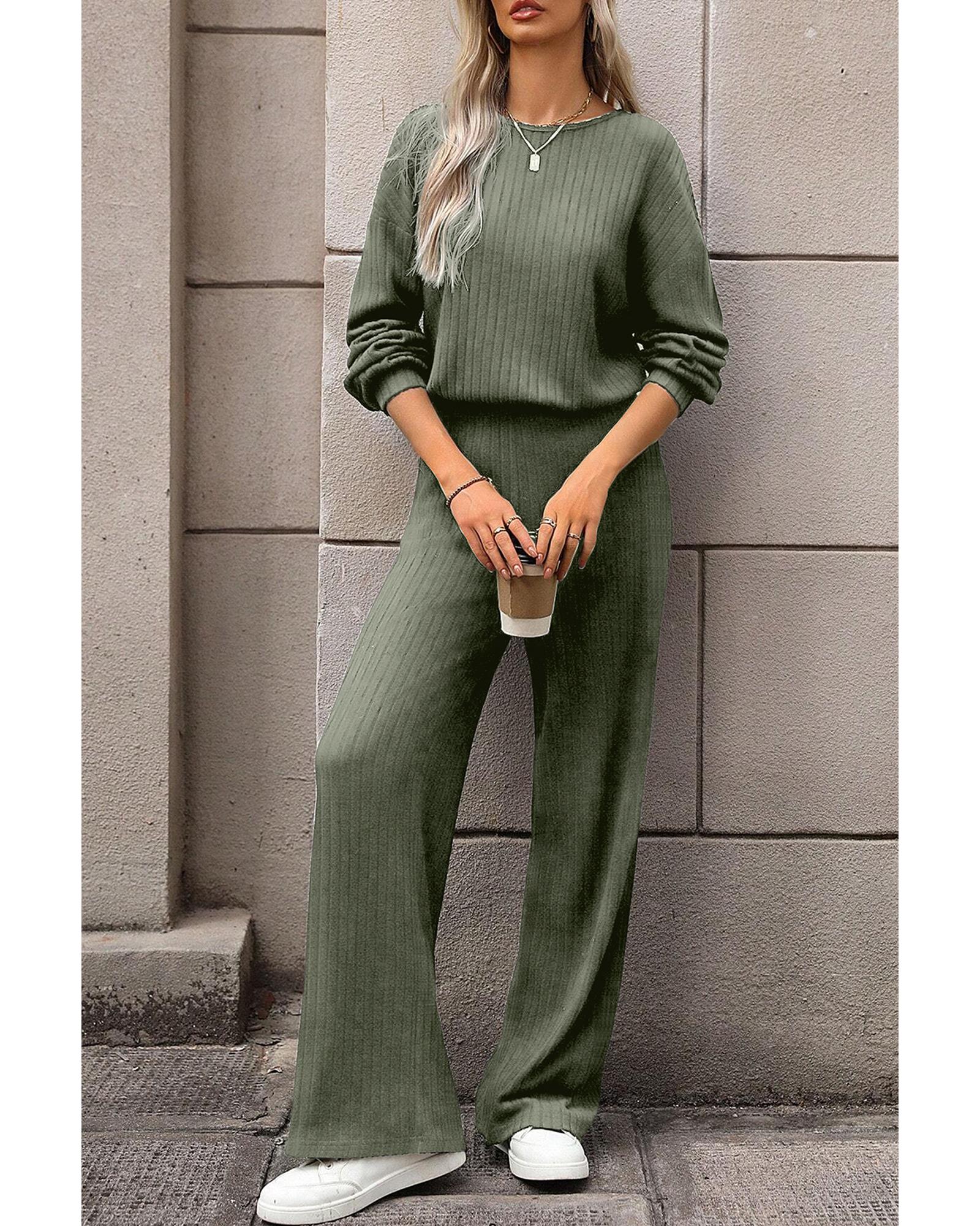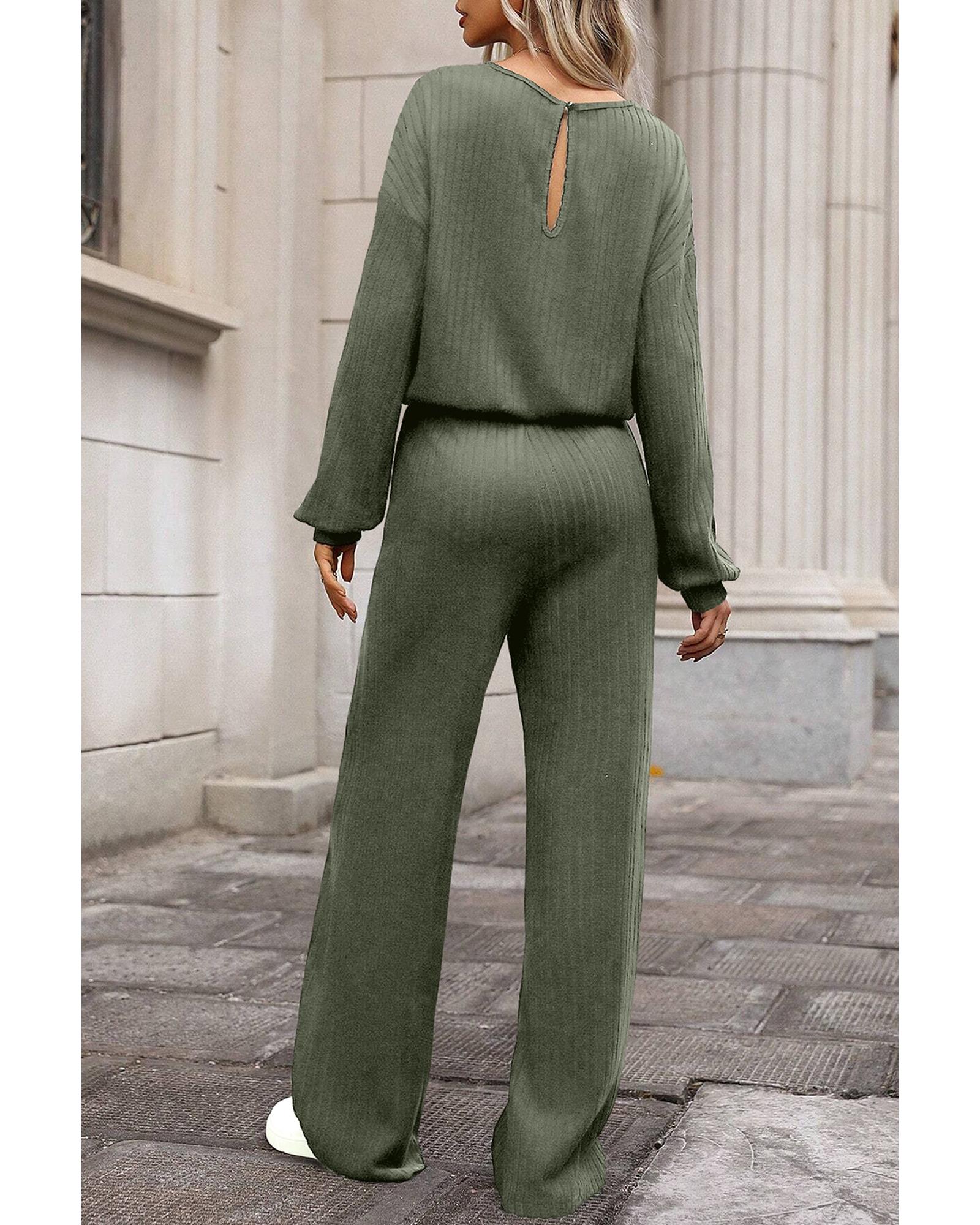 Laurel Green Solid Ribbed Knit Keyhole Back High Waist Jumpsuit – S