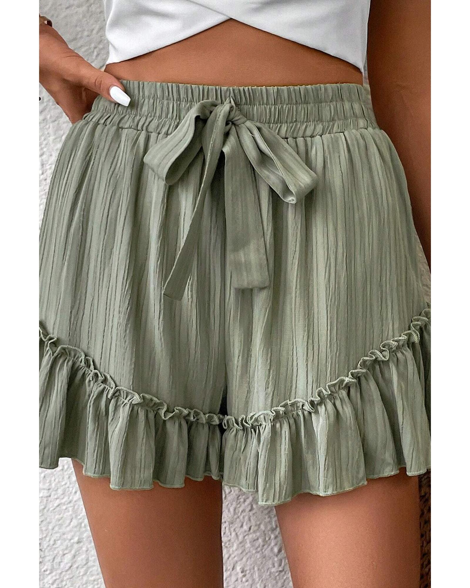 • Laurel Green Textured Tie Waist Ruffle Hem Shorts