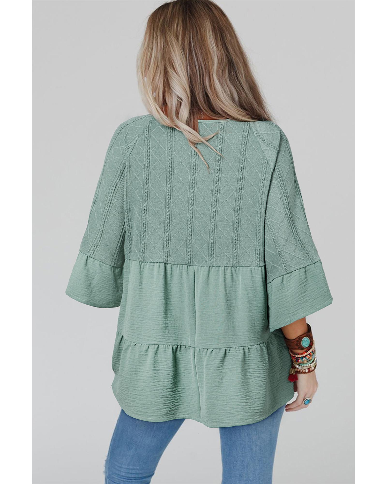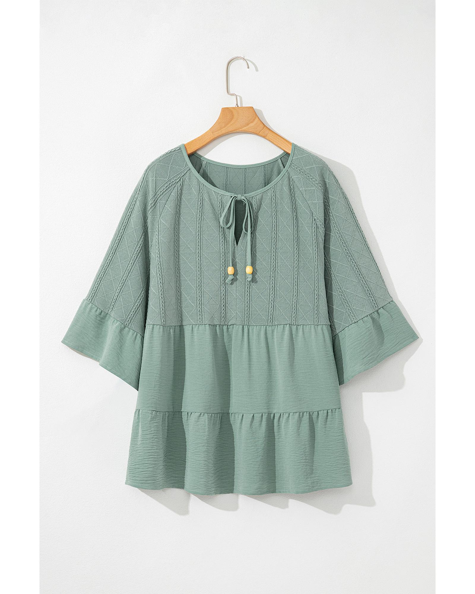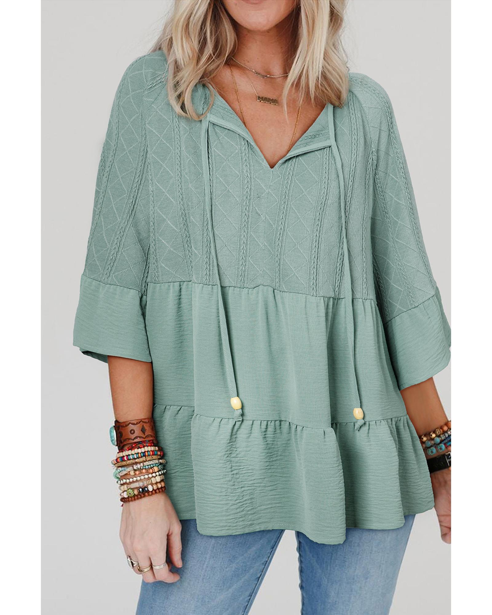 Laurel Green Tie Split Neck Textured Ruffle Patchwork Blouse – M