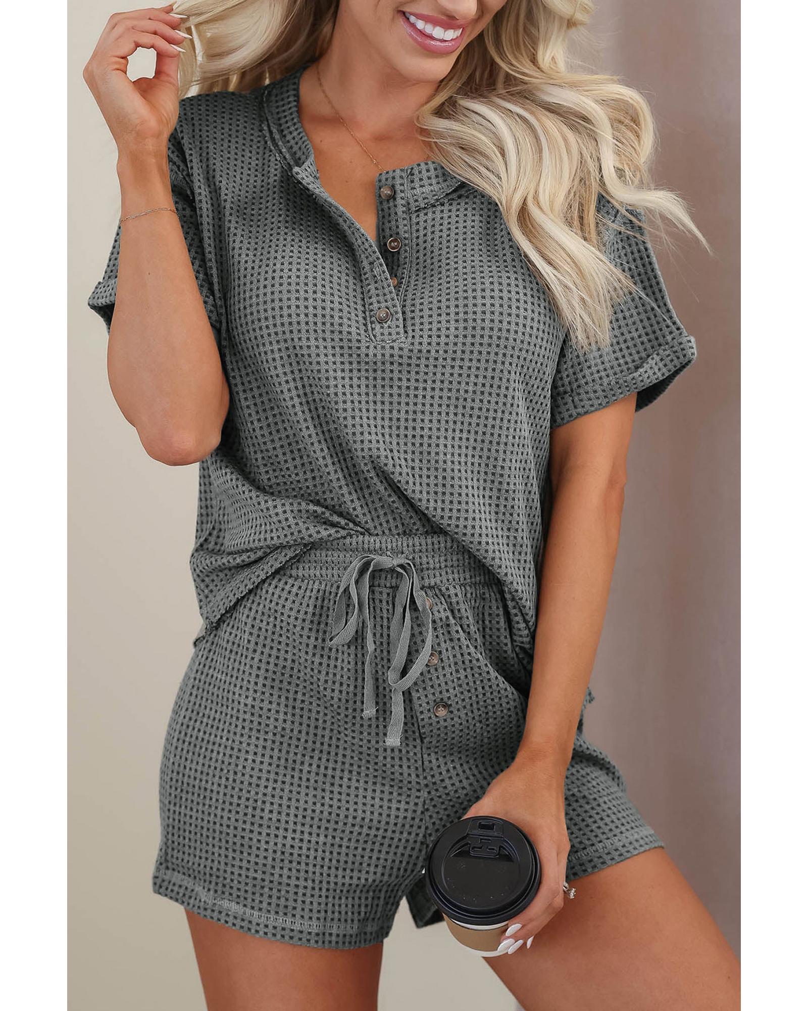Laurel Green Waffle Knit Buttoned Top and Drawstring Shorts Set – M