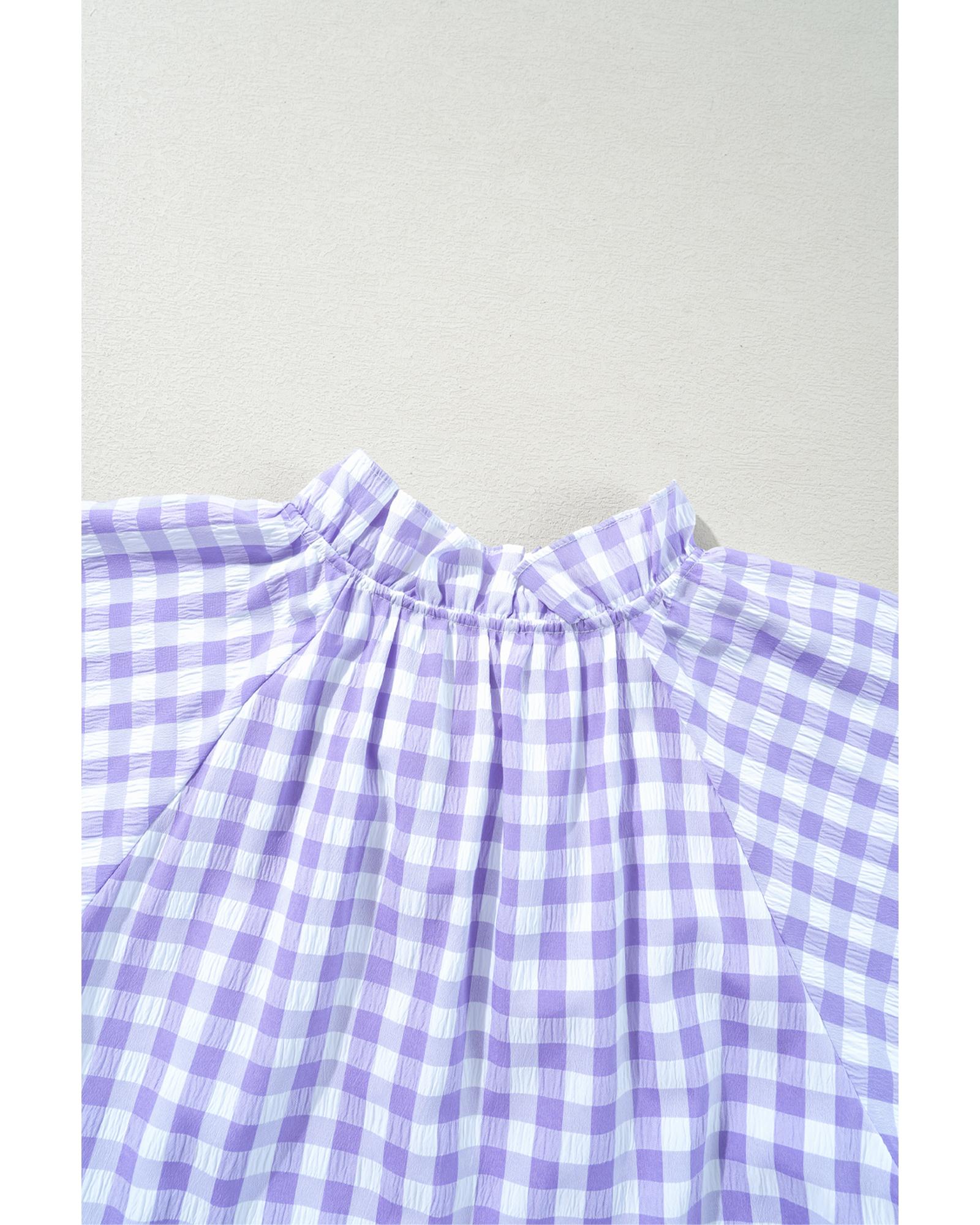 Lavendula Plaid Ruffle Wide Short Sleeve Babydoll Mini Dress – L