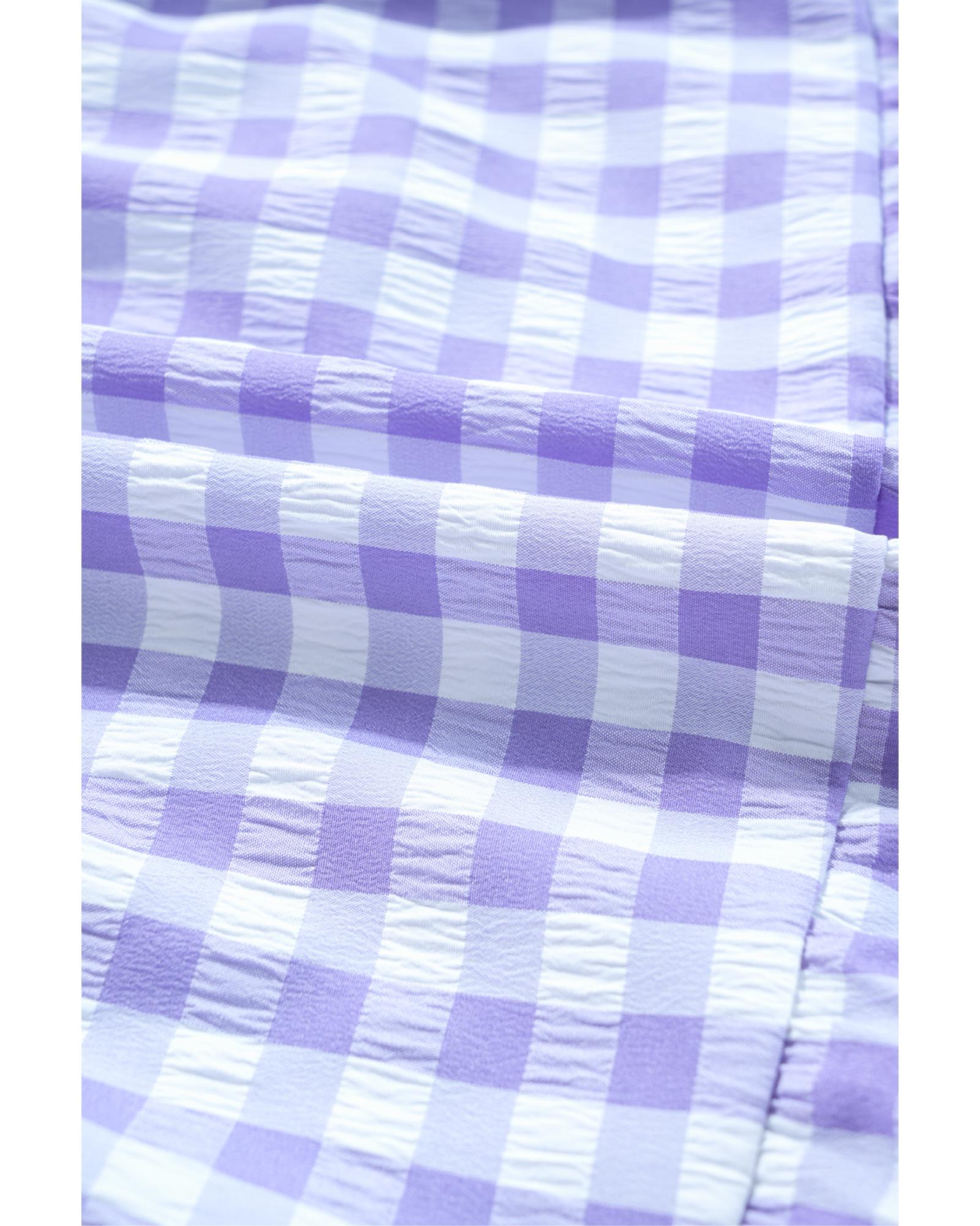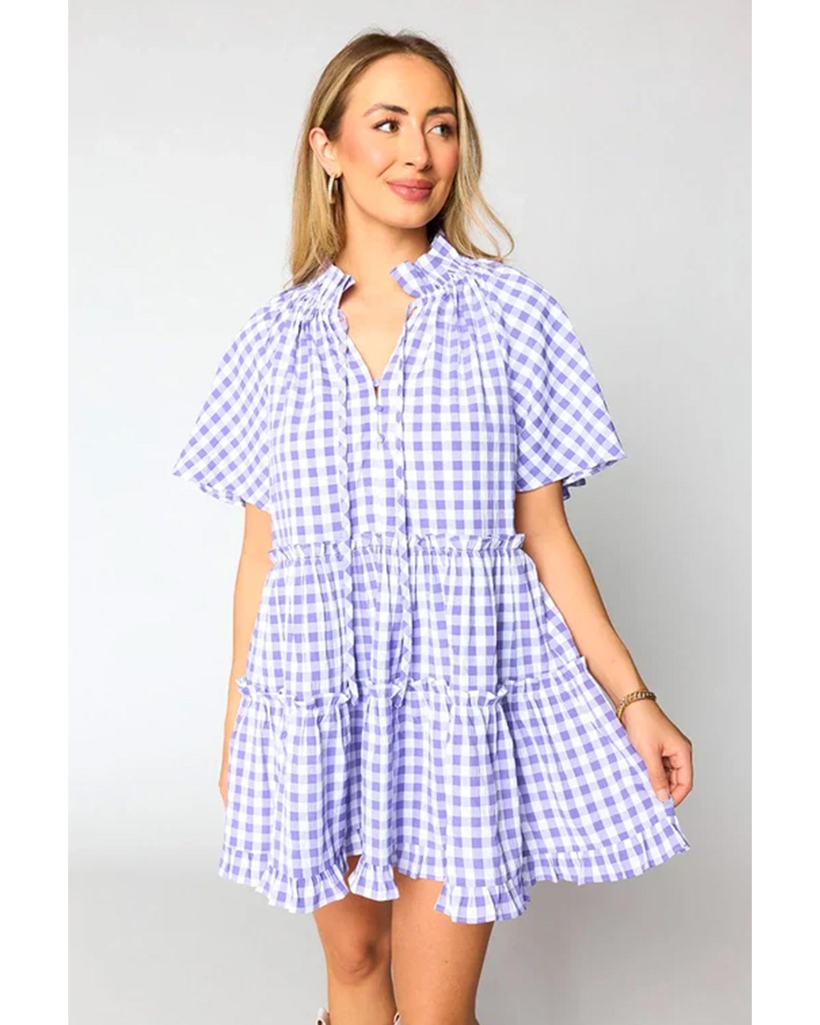 Lavendula Plaid Ruffle Wide Short Sleeve Babydoll Mini Dress – M