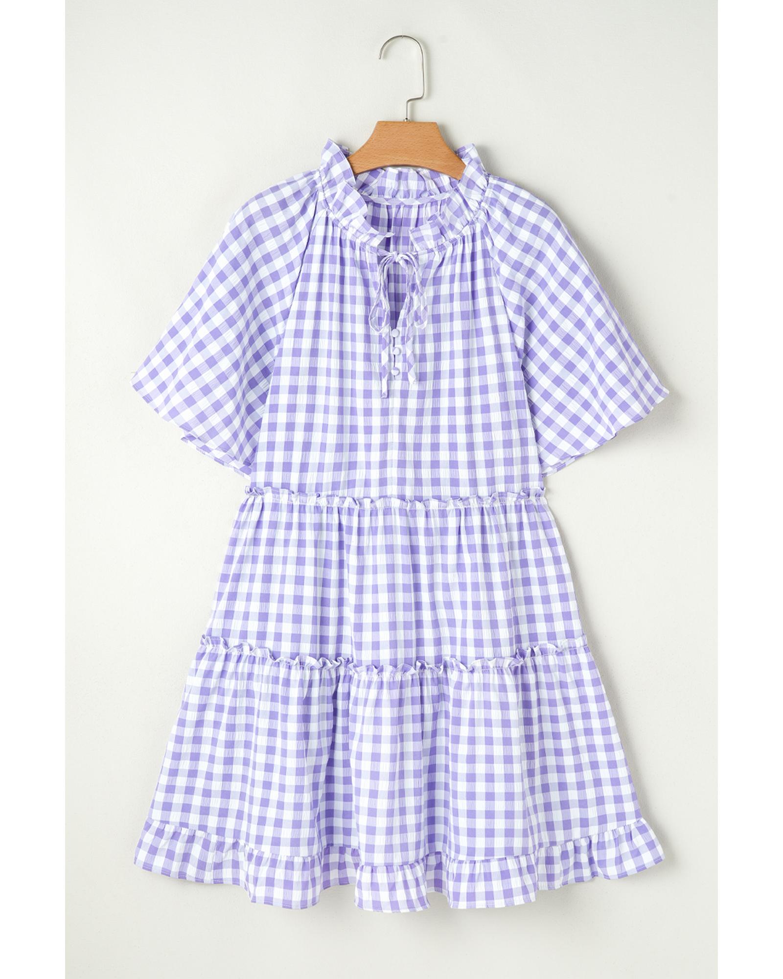 Lavendula Plaid Ruffle Wide Short Sleeve Babydoll Mini Dress – XL