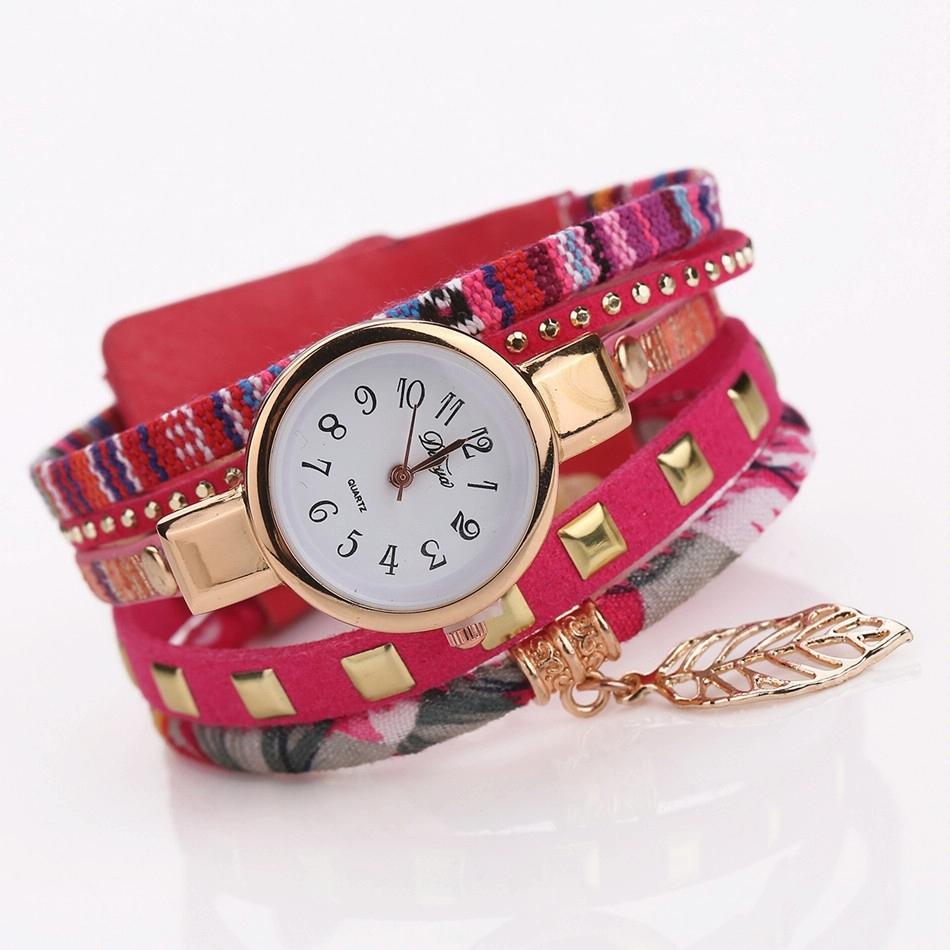Leaf Pendant Quartz Bracelet Watch for Women – Red