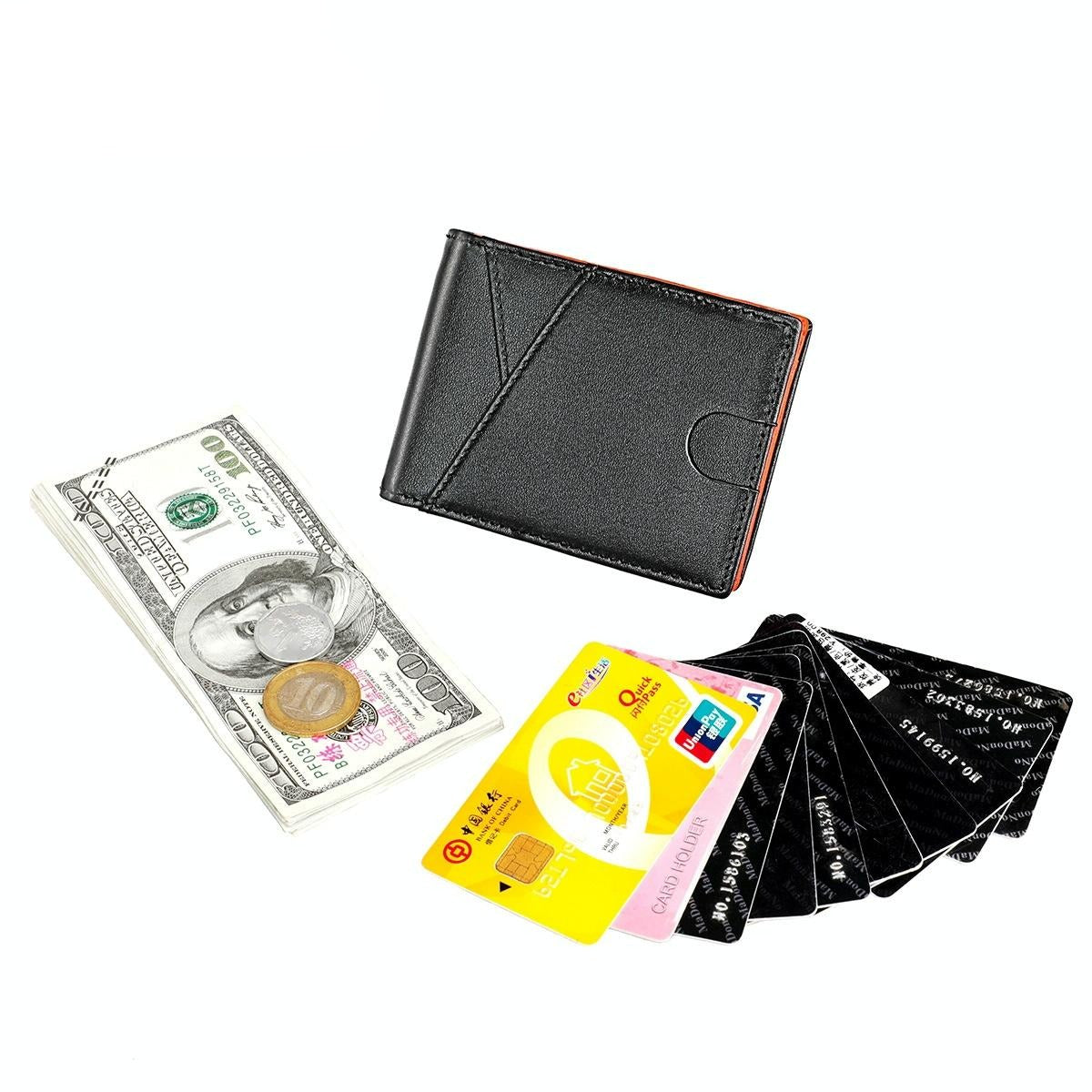 Leather Rfid Wallet with Front Pocket – Black – Orange