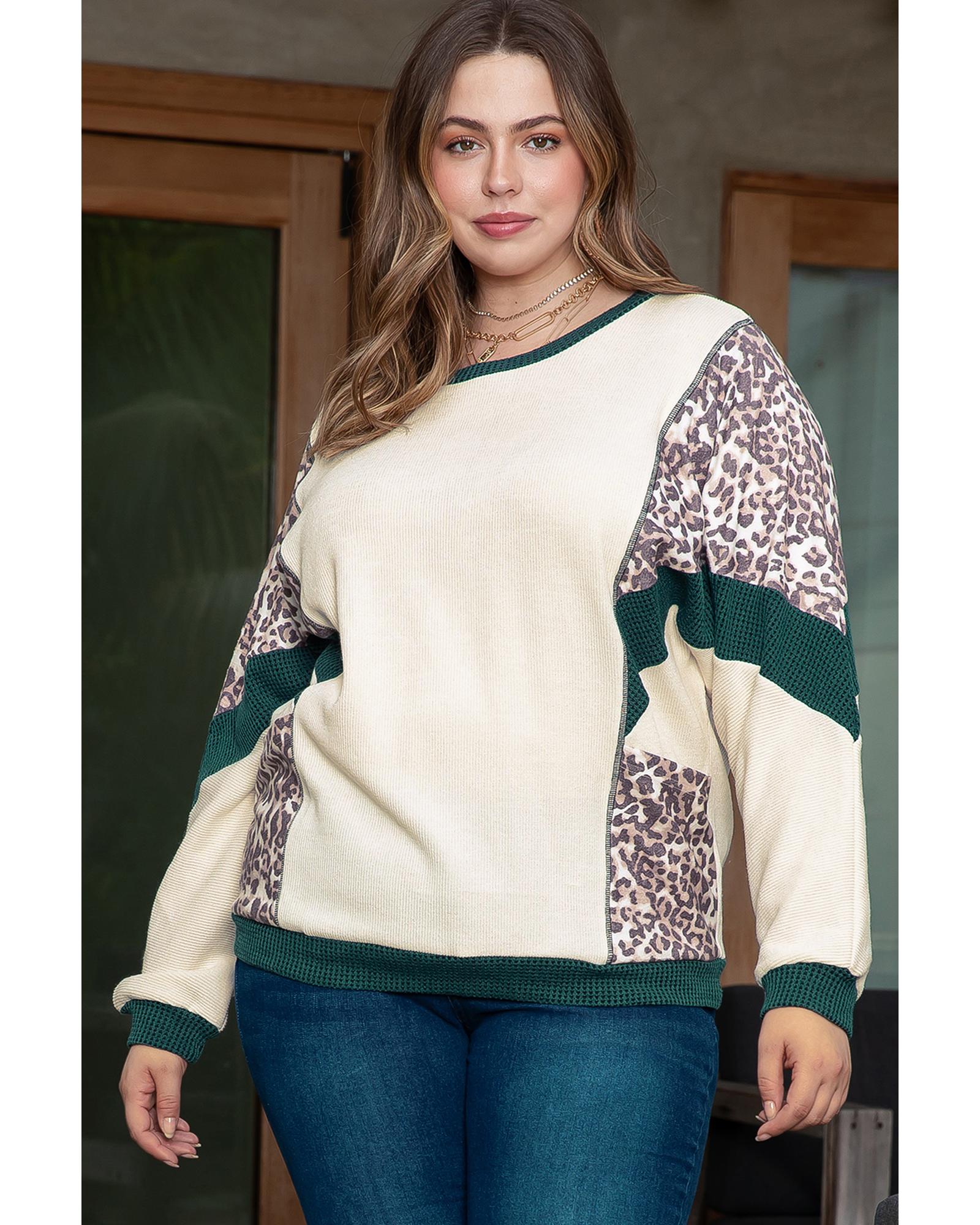 Leopard Colorblock Patchwork Dolman Sleeve Plus Size Top – 3X