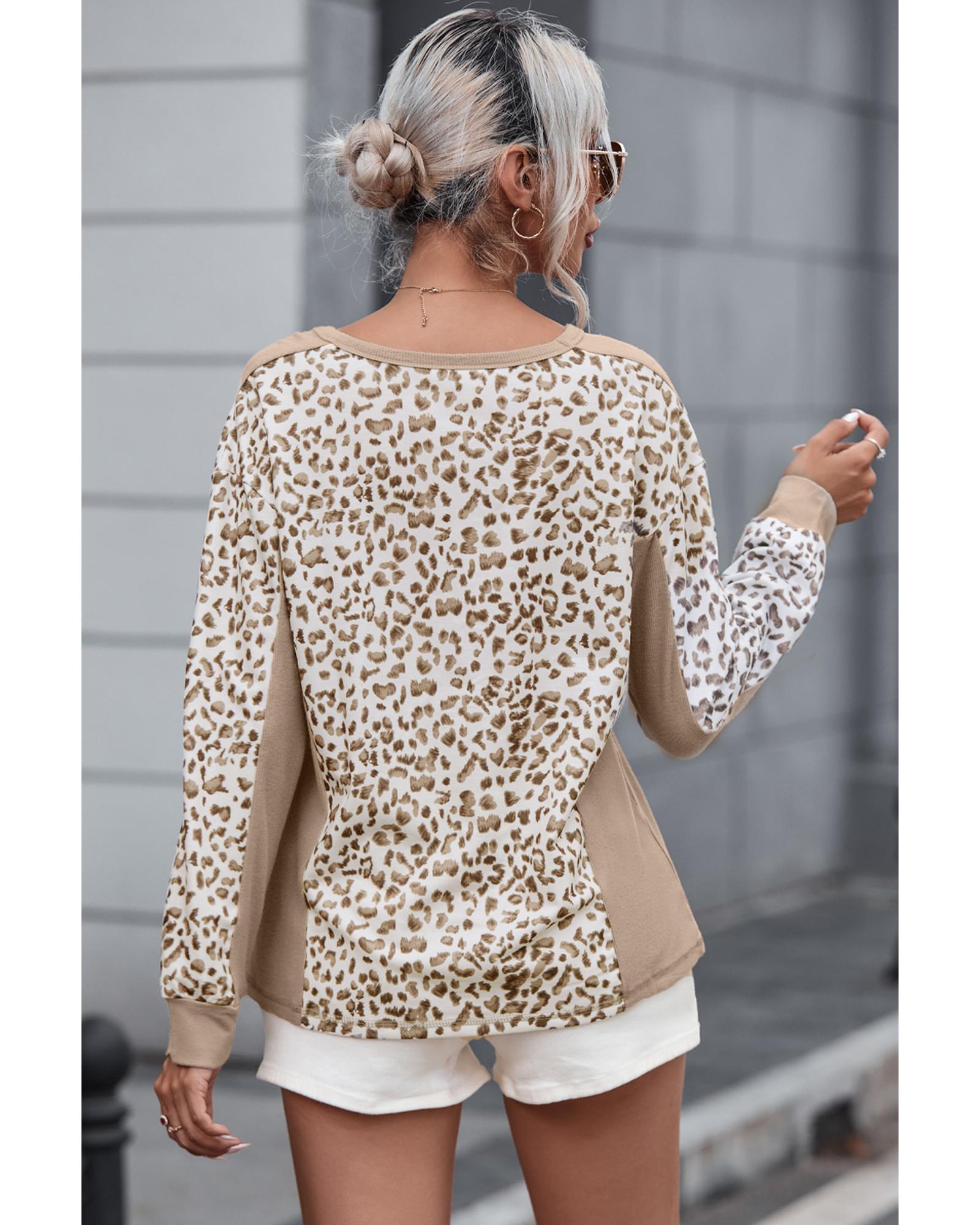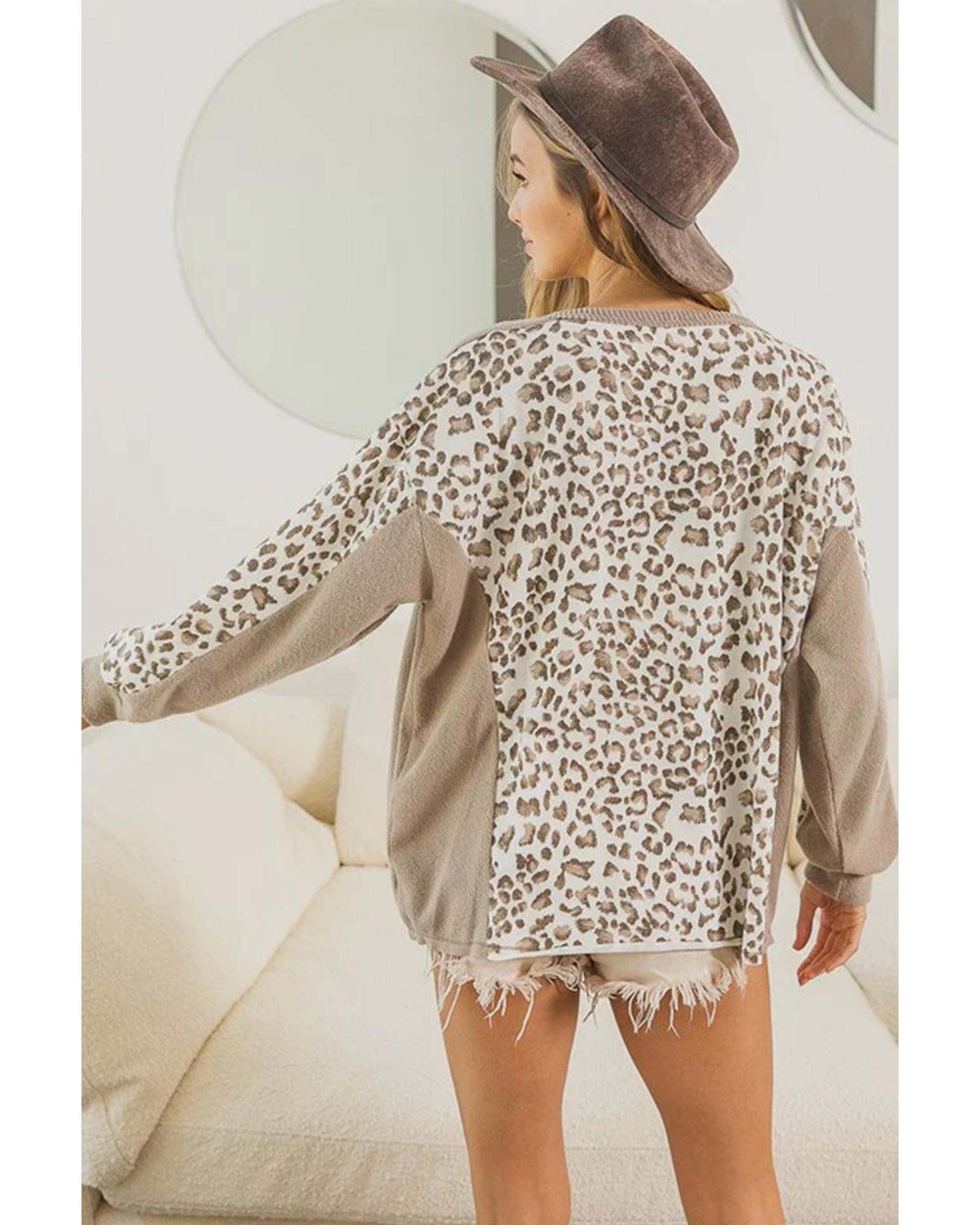 Leopard Print Crew Neck Long Sleeve Top – S