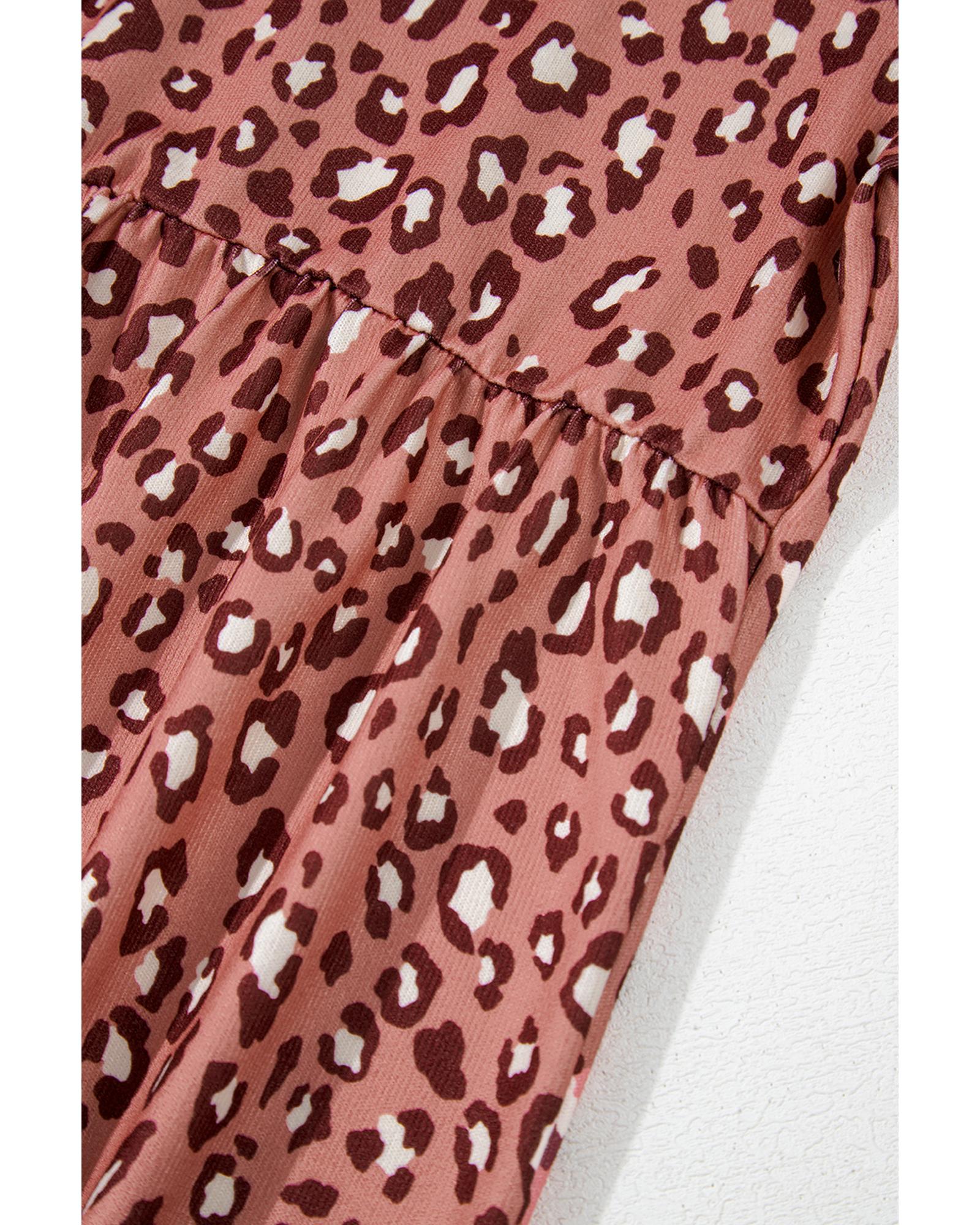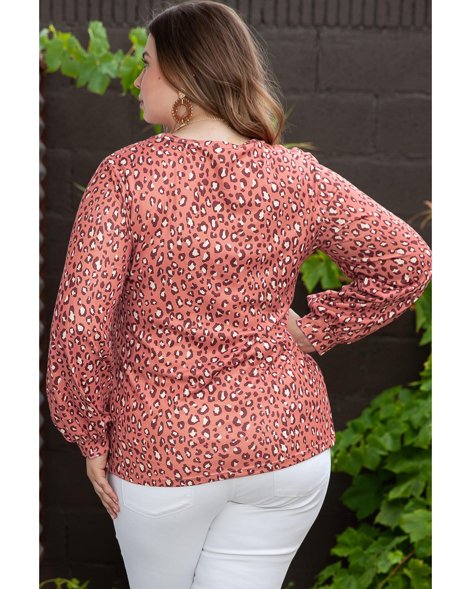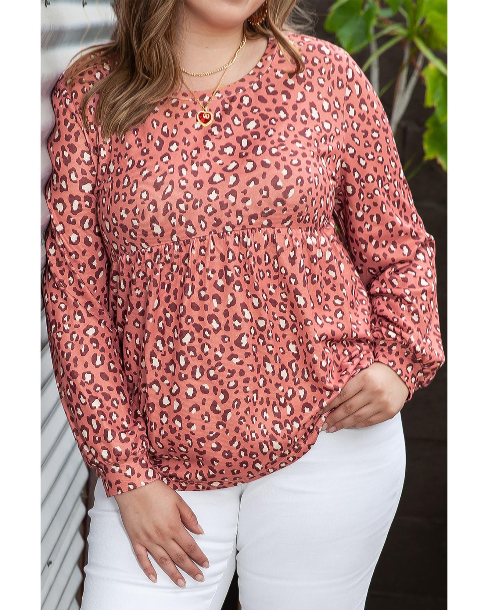 Leopard Print Long Sleeve Ruffled Babydoll Plus Size Blouse – 1X