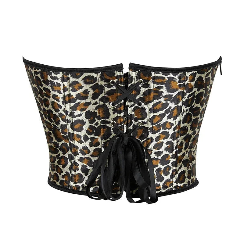 Leopard Print Zip-Up Corset Fishbone Support Plus Size S-Xxl – Xl