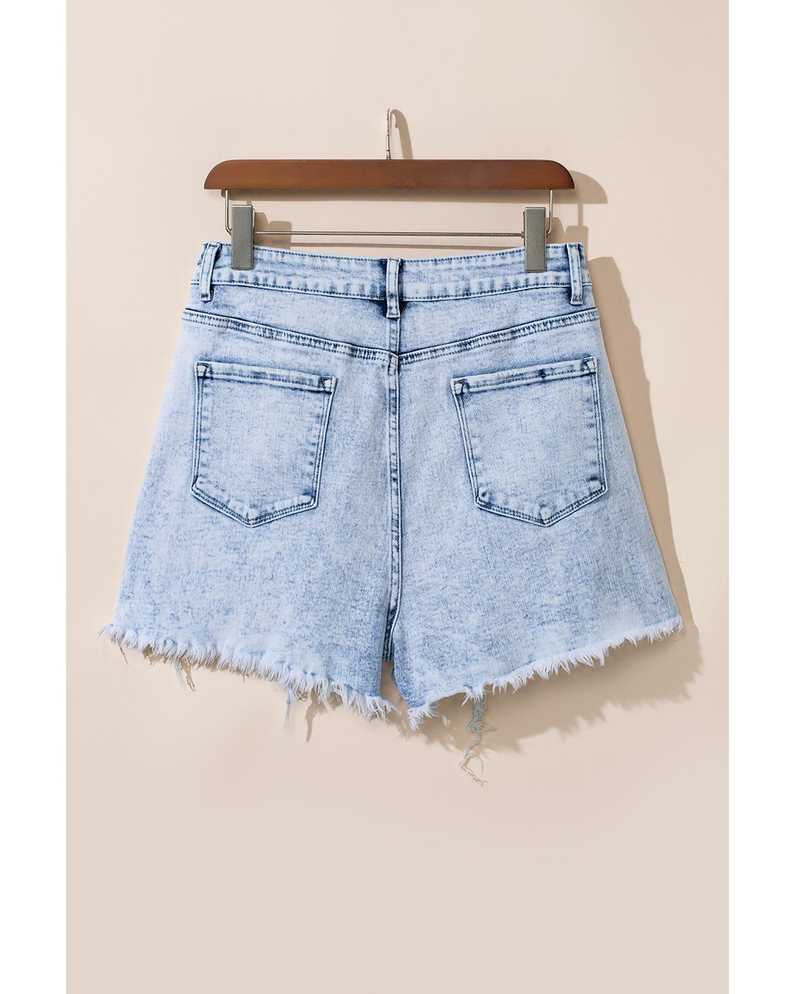 Light Blue Acid Wash Crossed Raw Edge Denim Shorts – 12 US