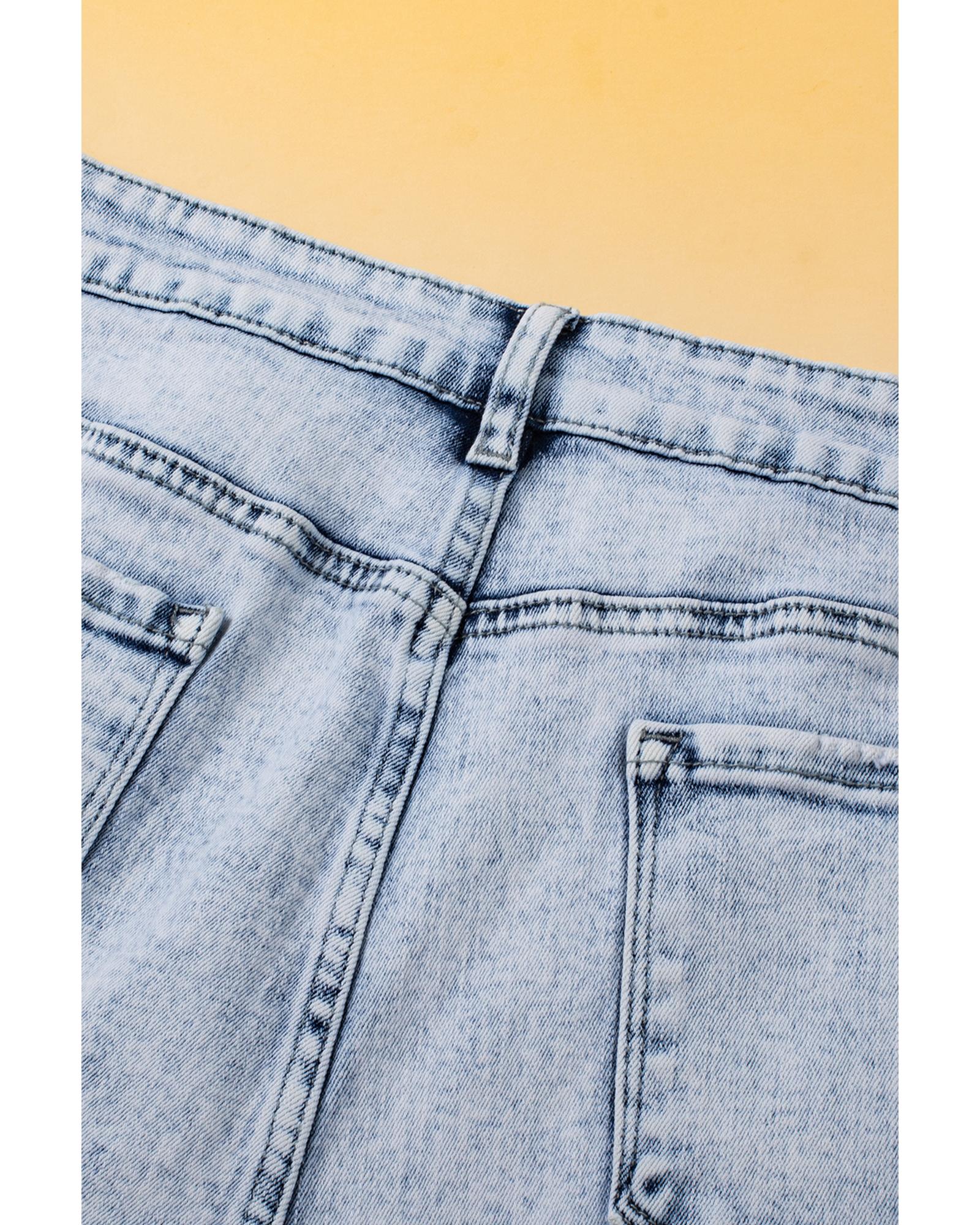 Light Blue Acid Wash Crossed Raw Edge Denim Shorts - 14 US
