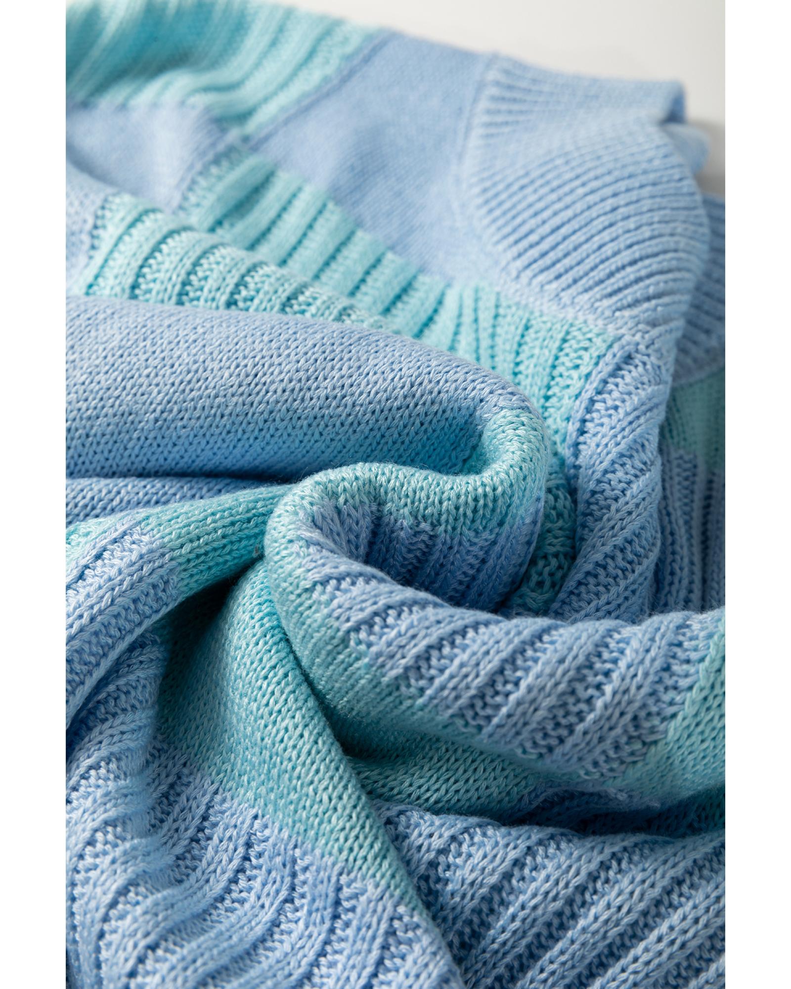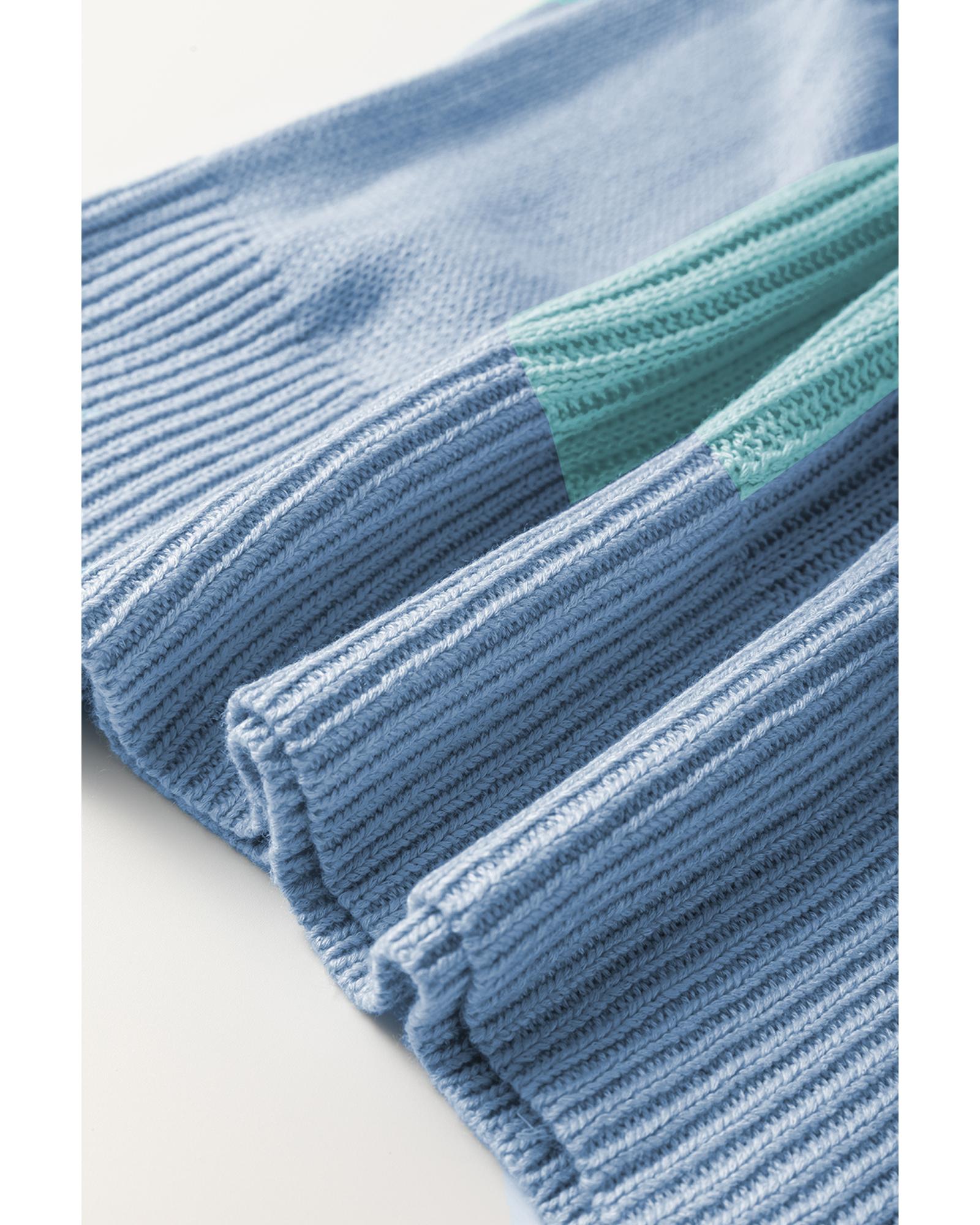 Light Blue Checkered Color Block Crew Neck Short Sleeve Sweater – XL