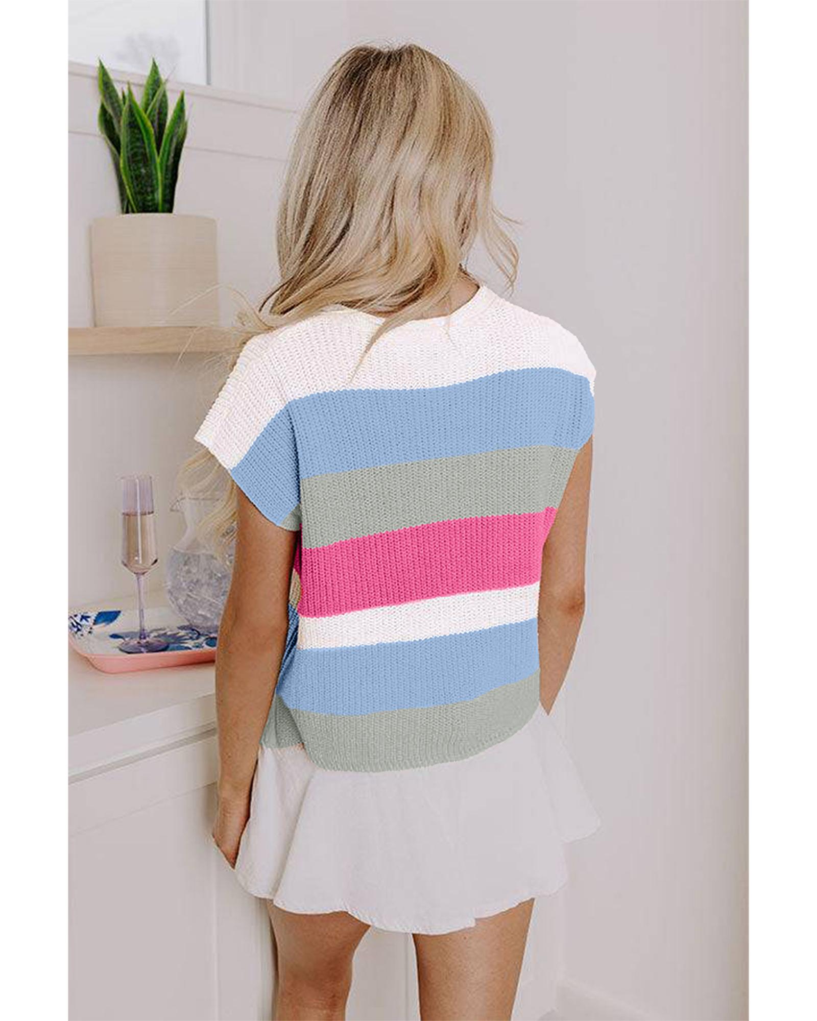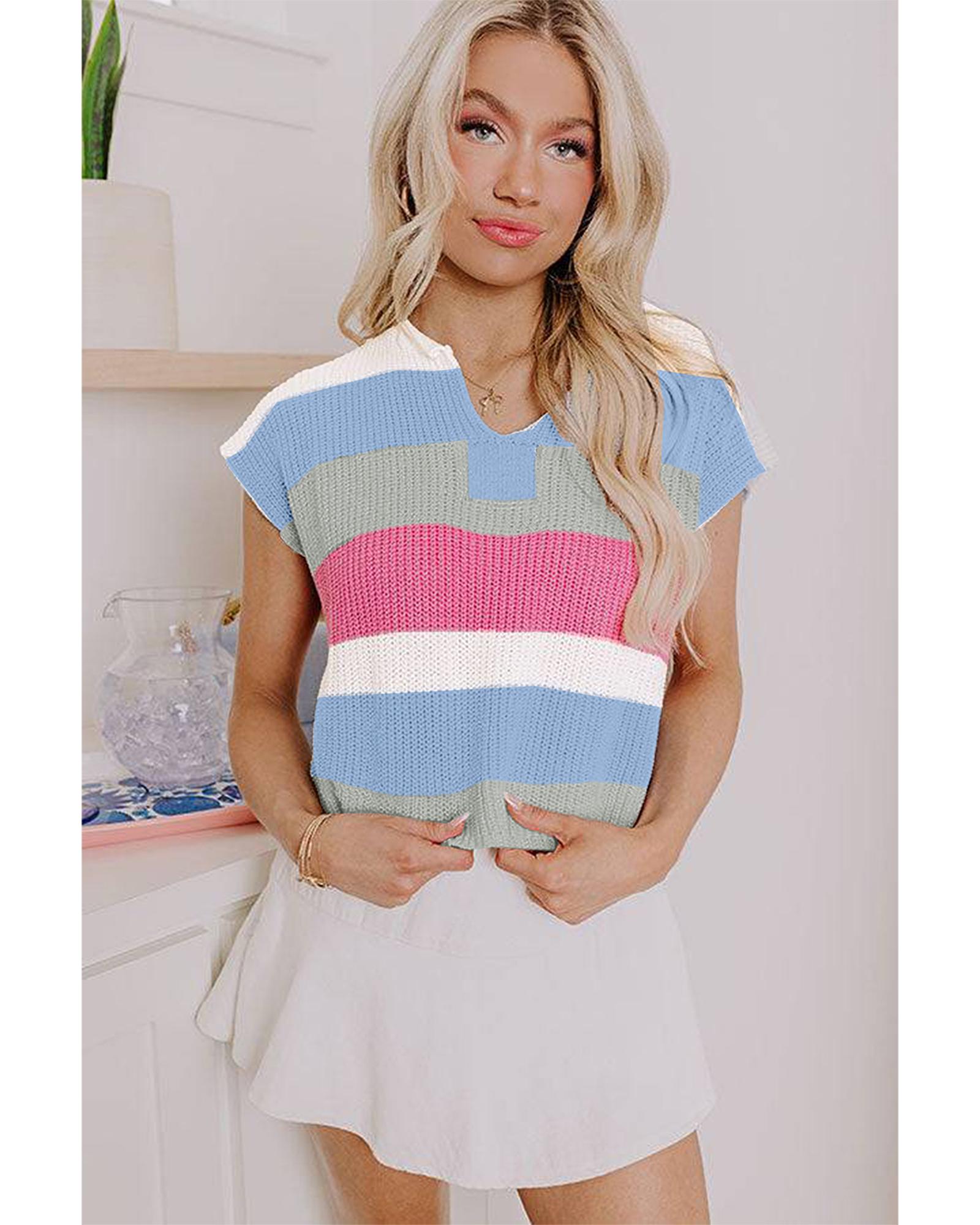 Light Blue Color Block Notch V Neck Sweater T Shirt – XL
