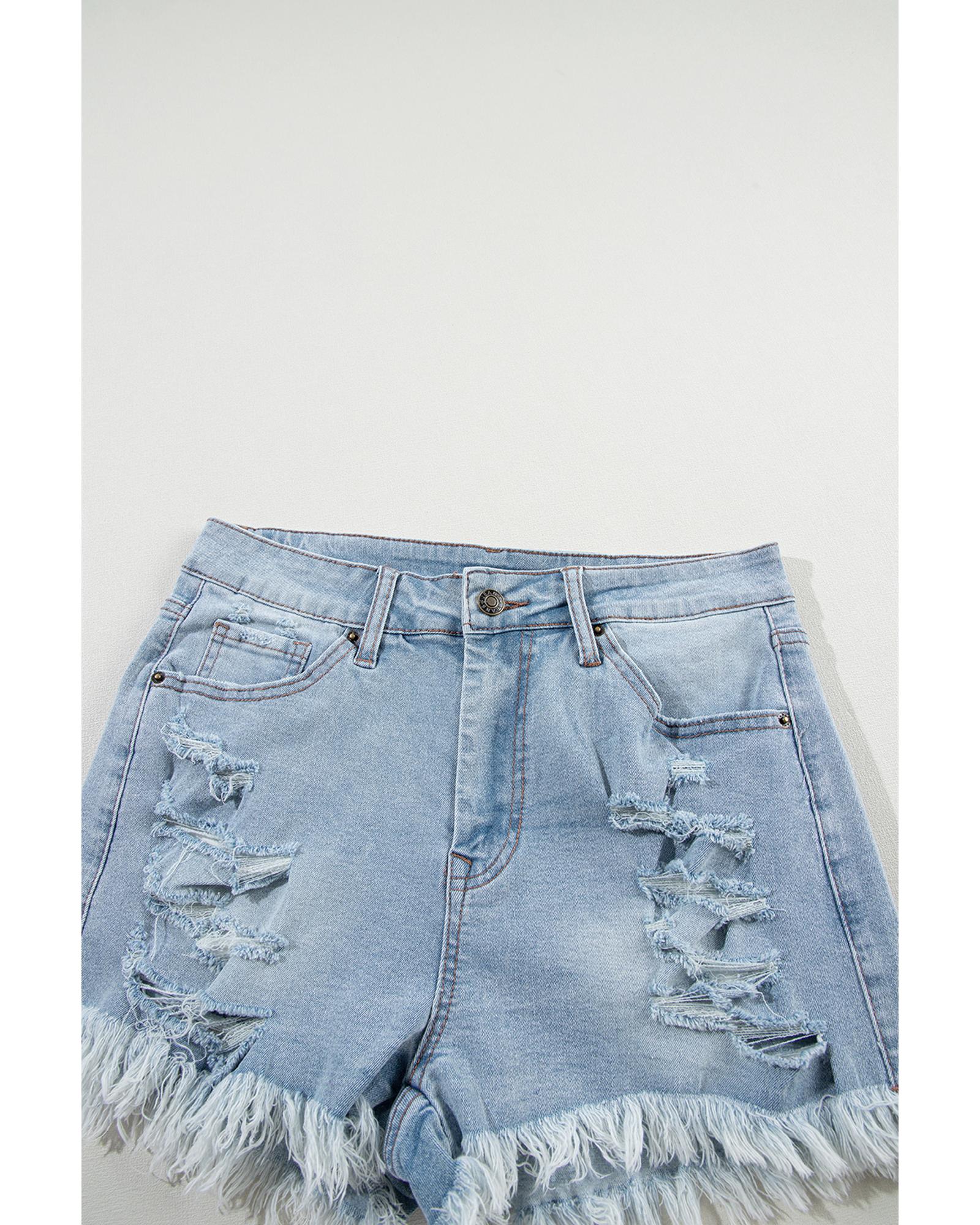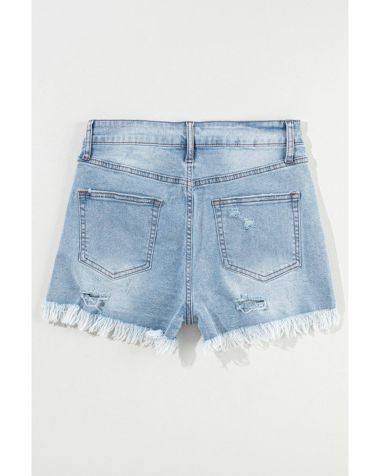 Light Blue Distressed Ripped Raw Hem High Waist Denim Shorts – 10 US
