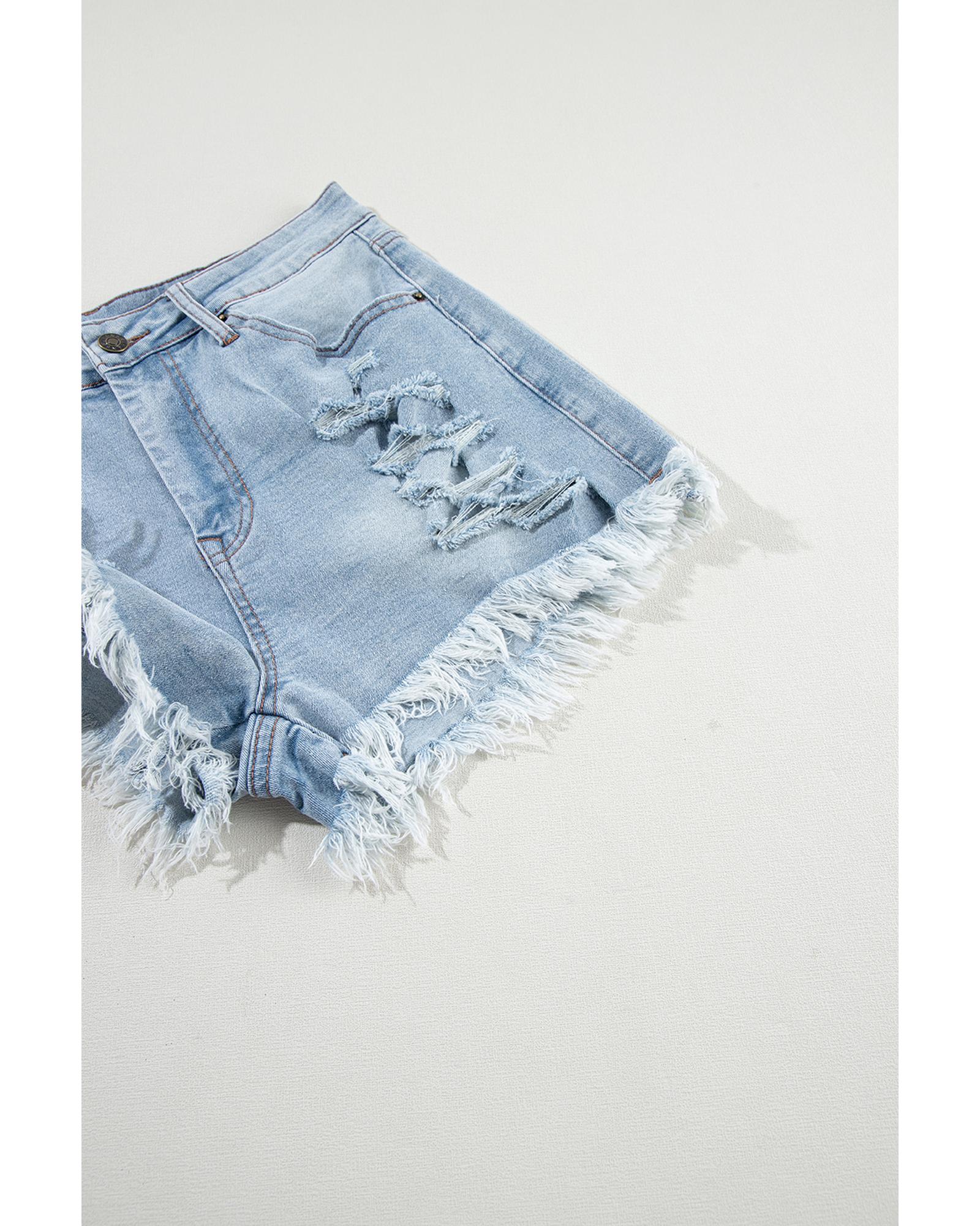 Light Blue Distressed Ripped Raw Hem High Waist Denim Shorts – 12 US
