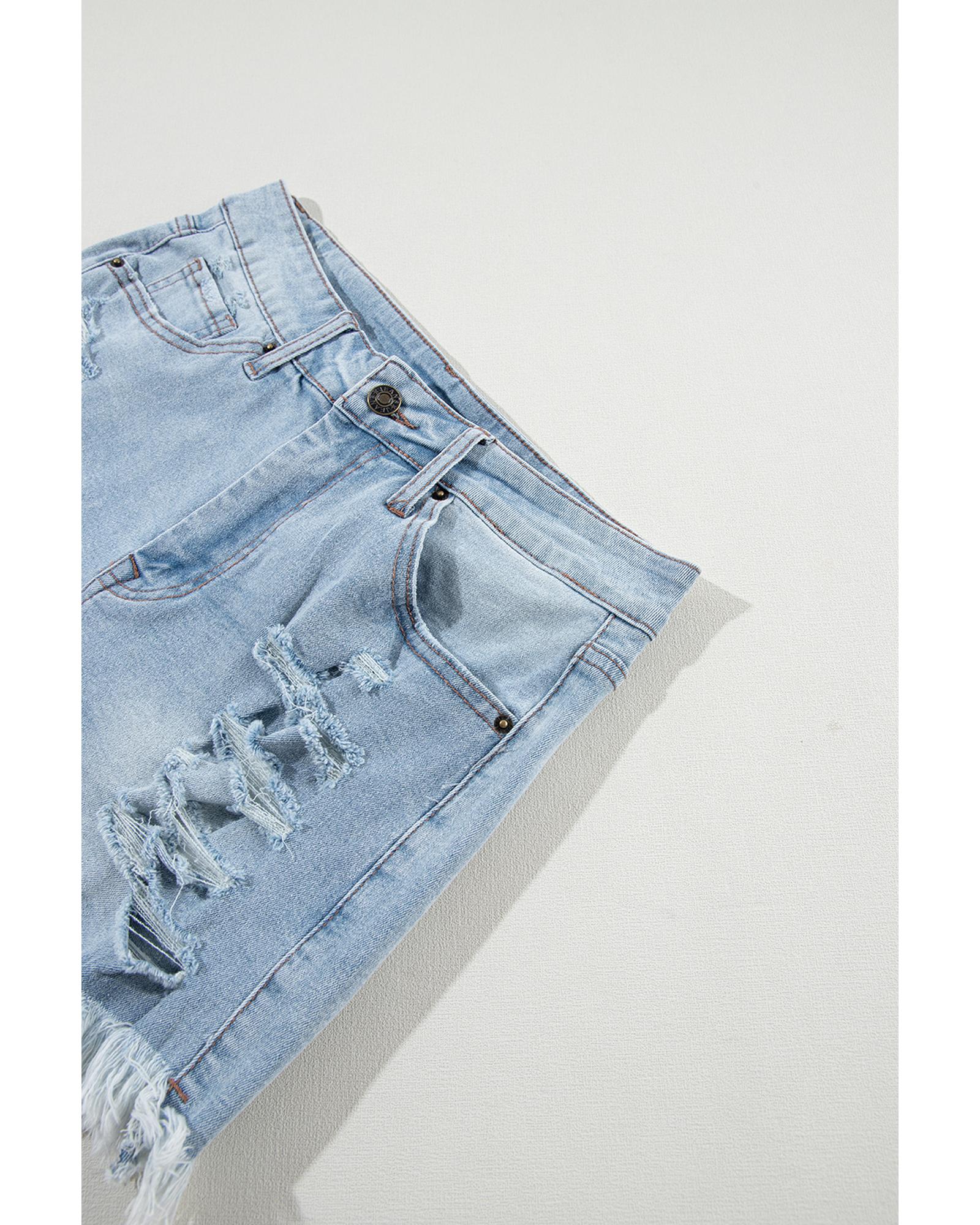 Light Blue Distressed Ripped Raw Hem High Waist Denim Shorts – 14 US