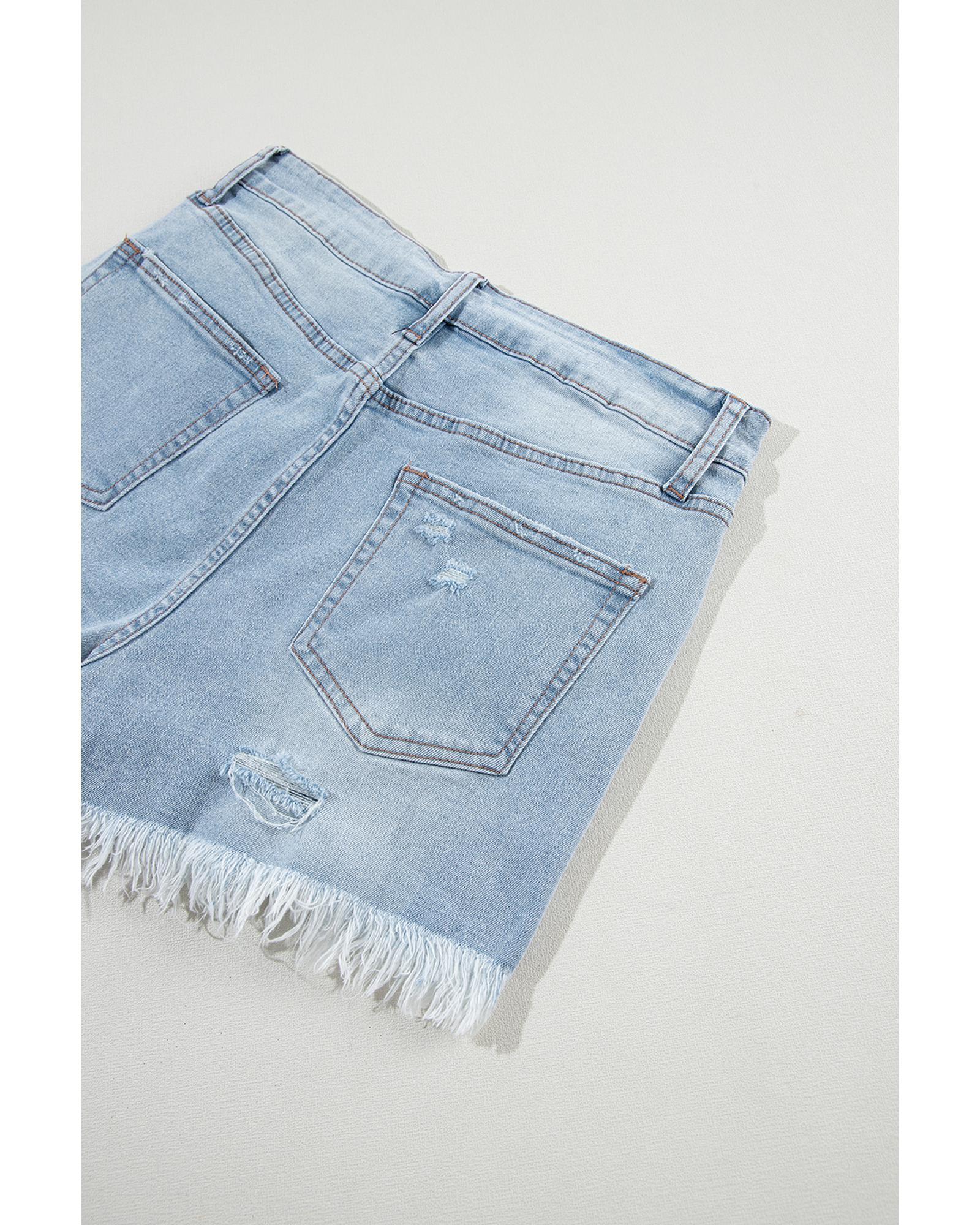 Light Blue Distressed Ripped Raw Hem High Waist Denim Shorts – 16 US