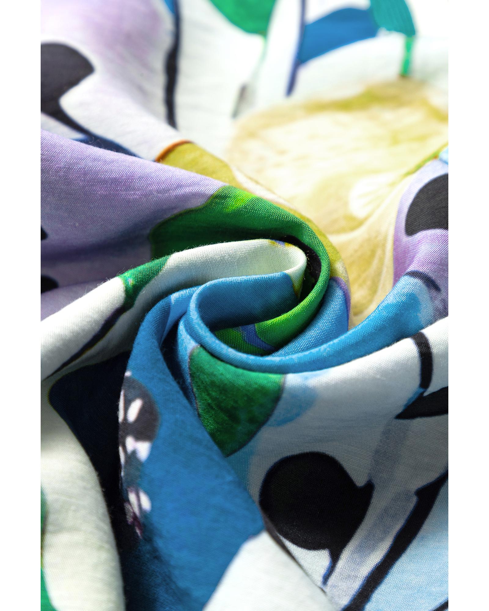 Light Blue Floral Print Slit V Neck Short Sleeve Blouse – S