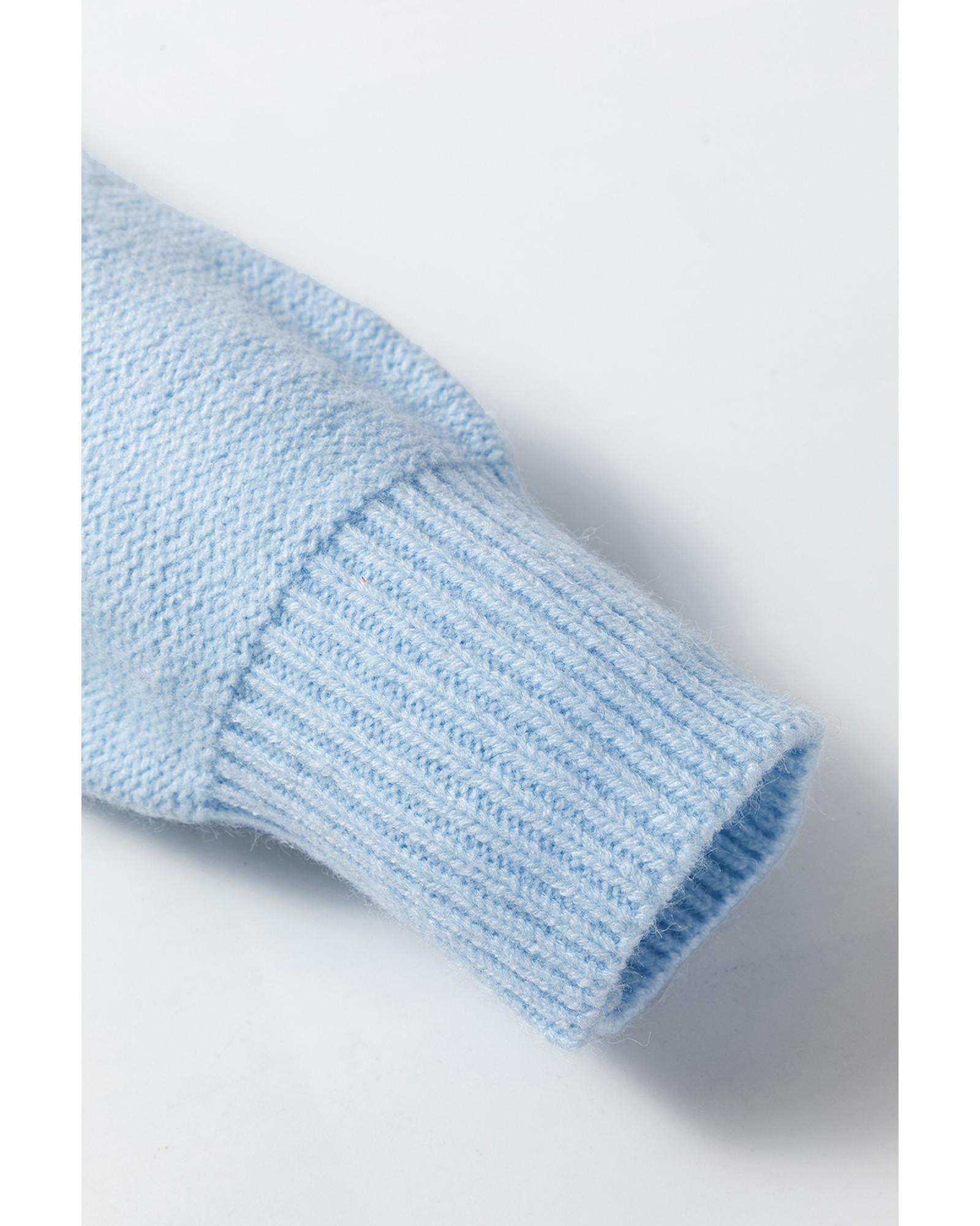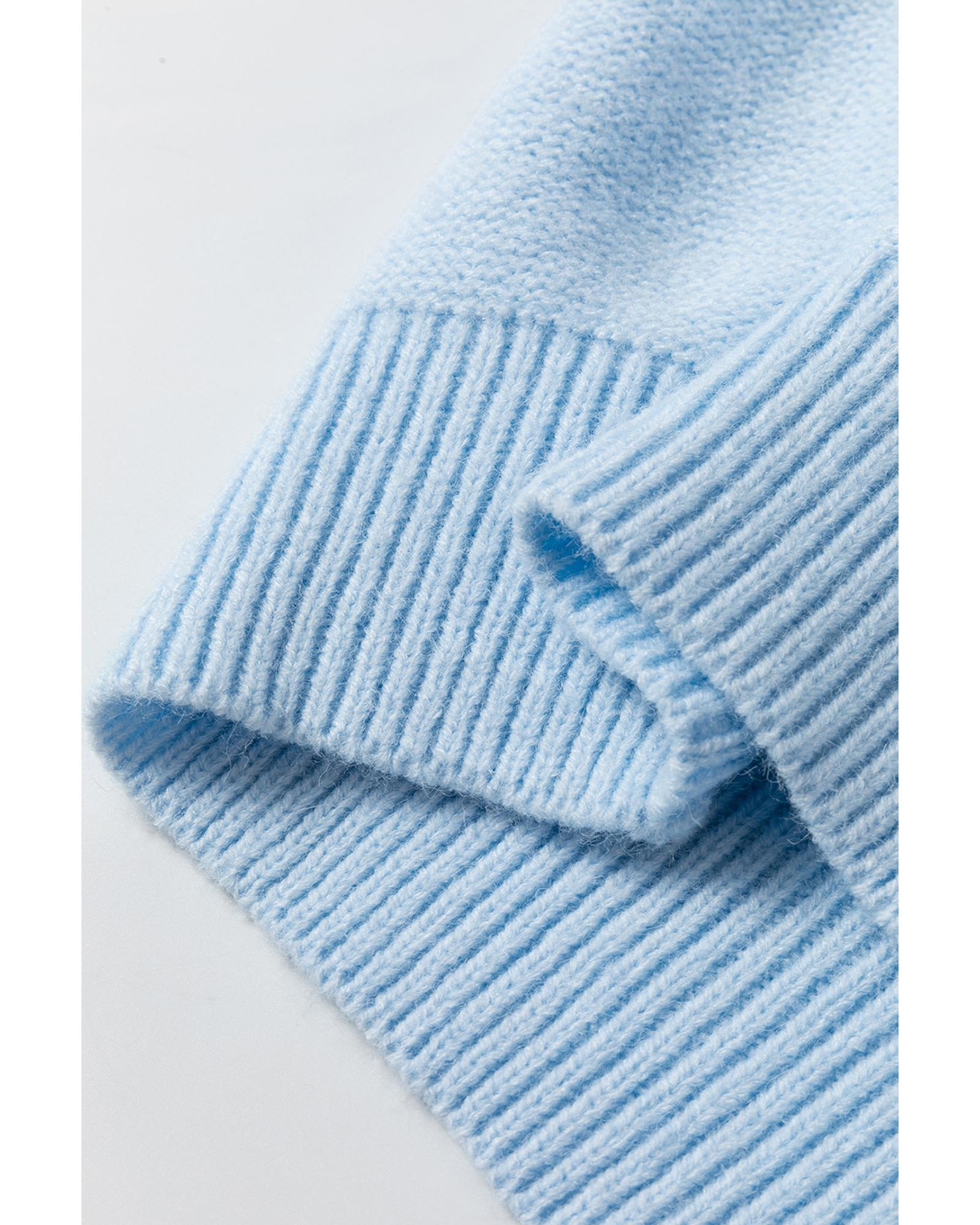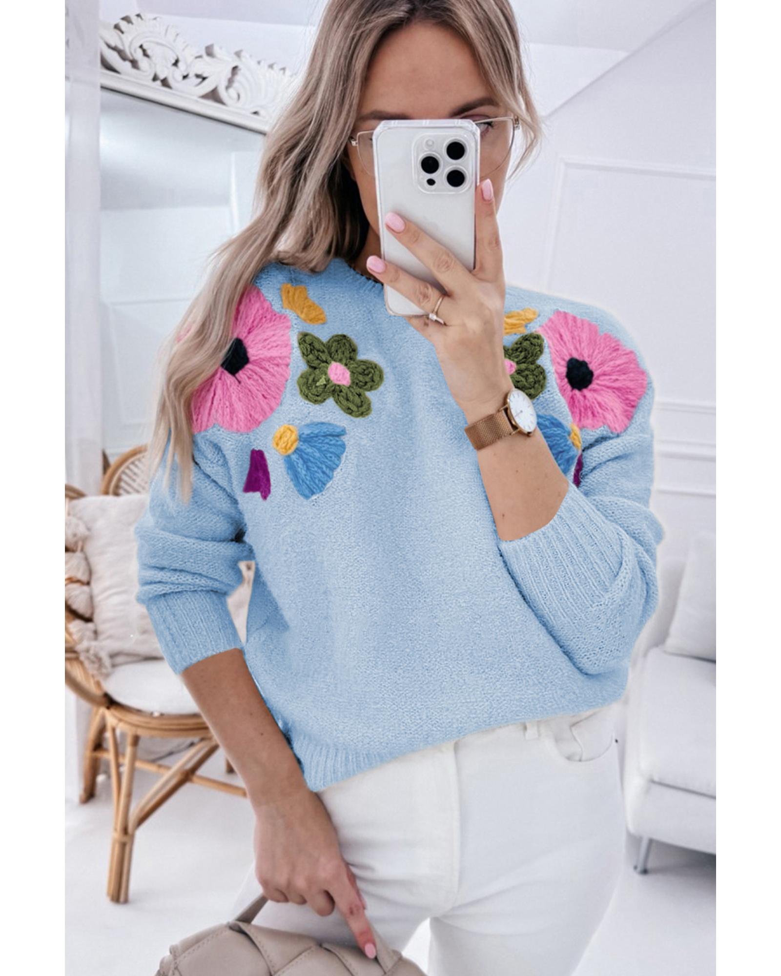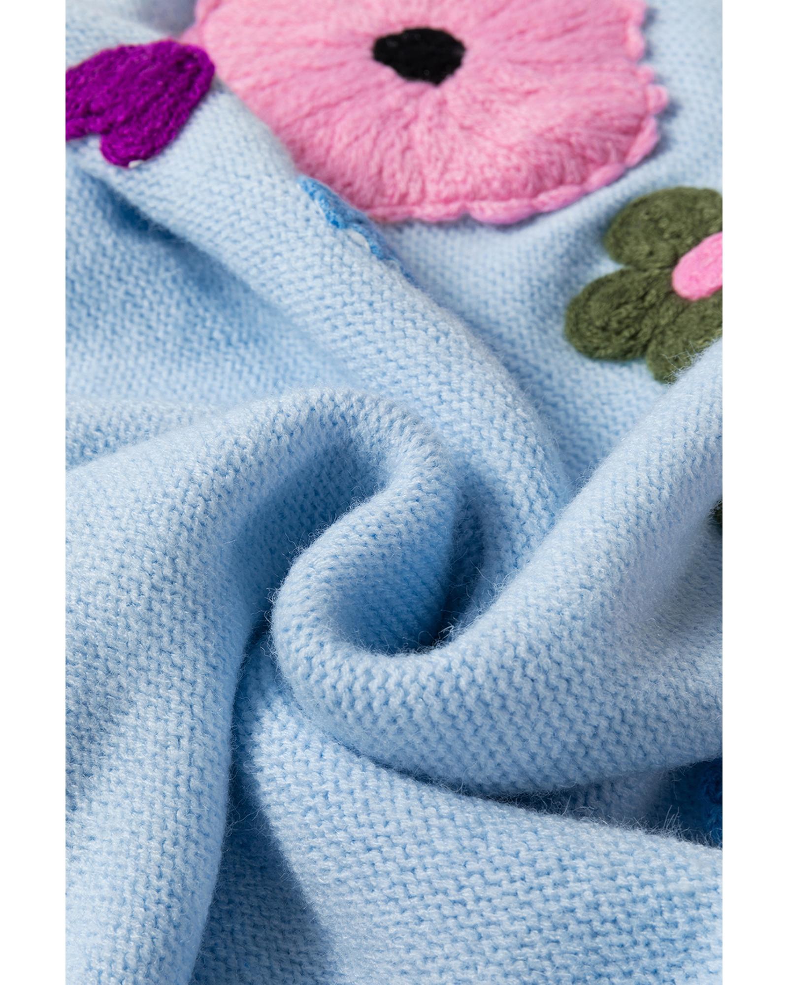 Light Blue Knitted Flower Pattern Ribbed Edge Sweater – M