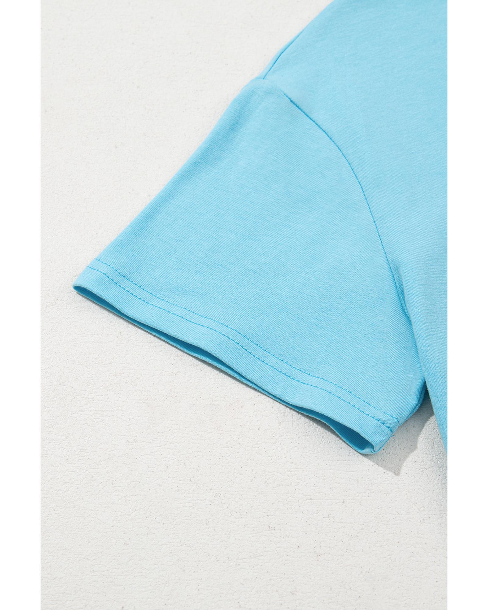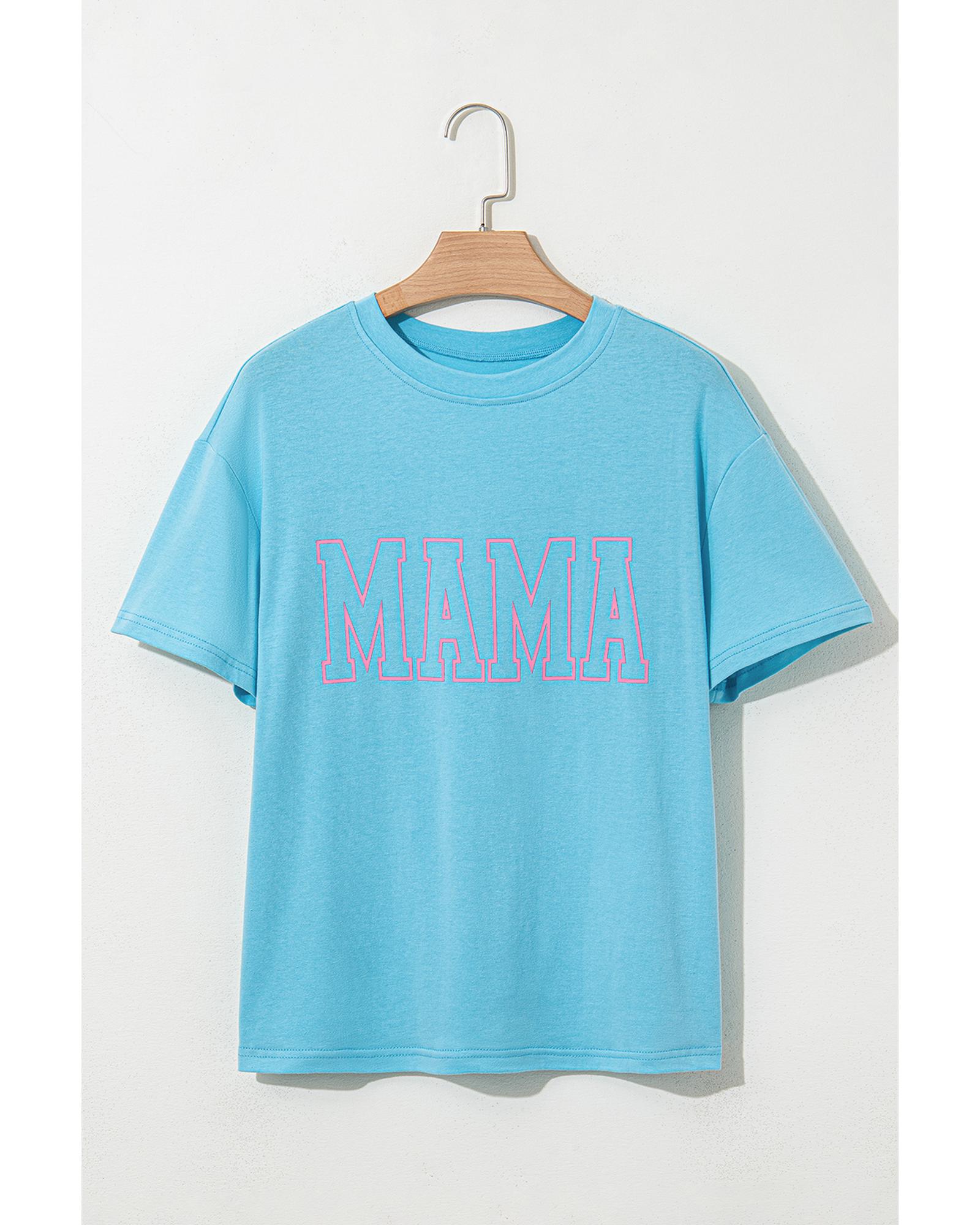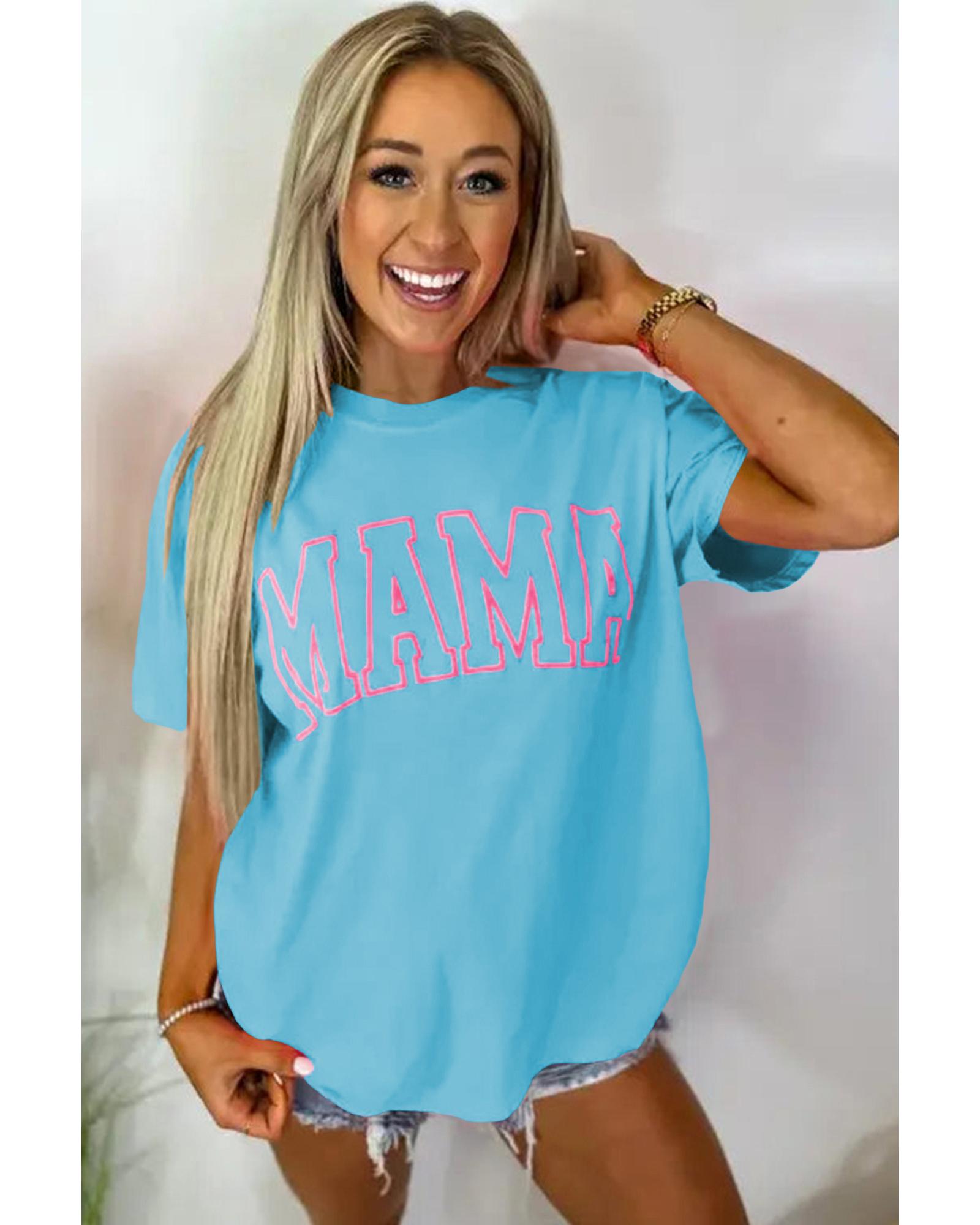 - Light Blue MAMA Letter Graphic Neon T Shirt