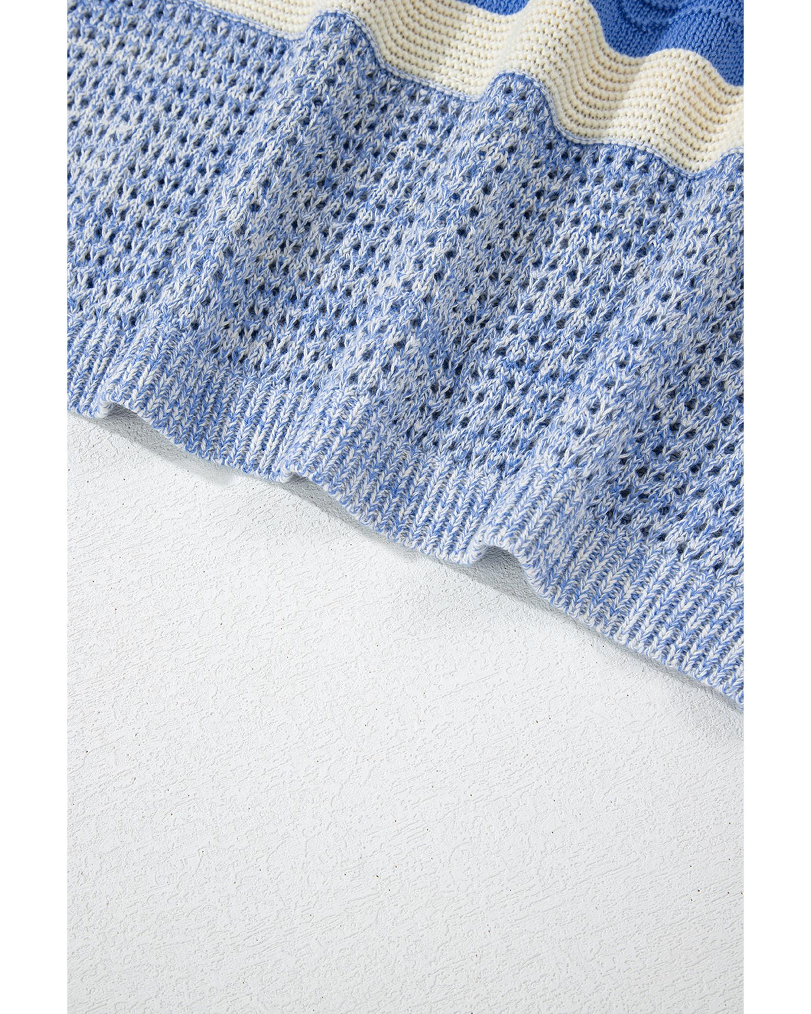 - Light Blue Open Stitch Puff Sleeve Sweater