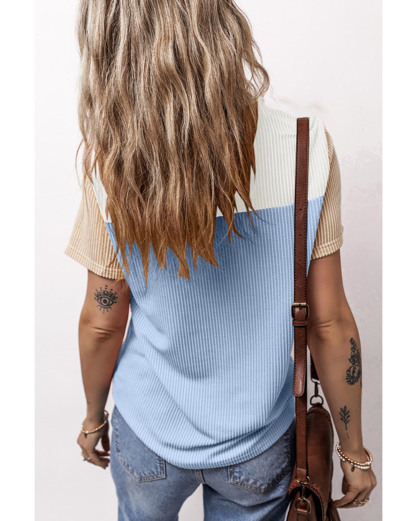 Light Blue Rib Textured Colorblock T Shirt – L