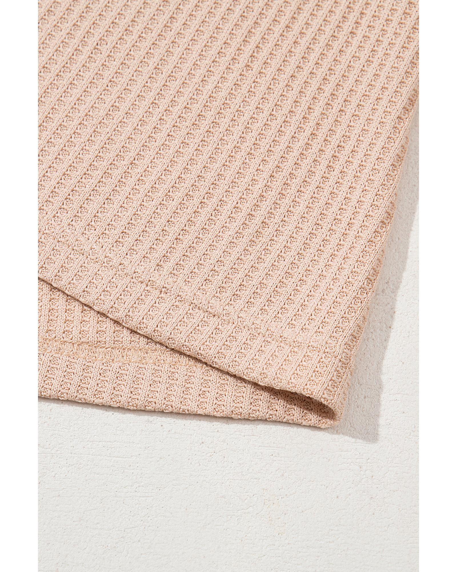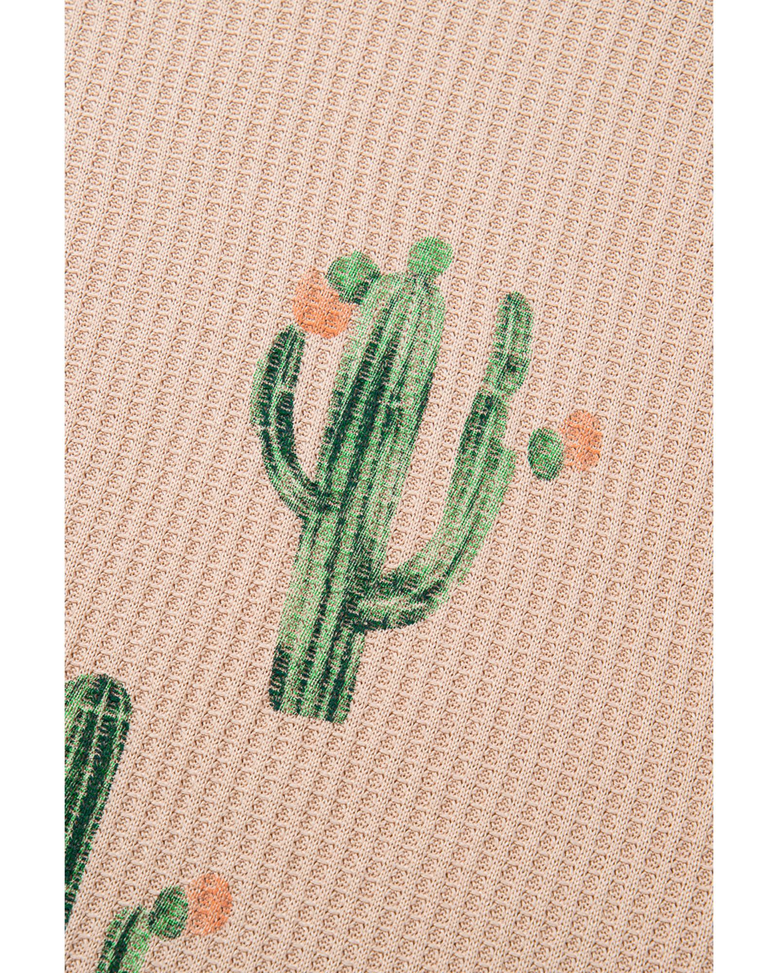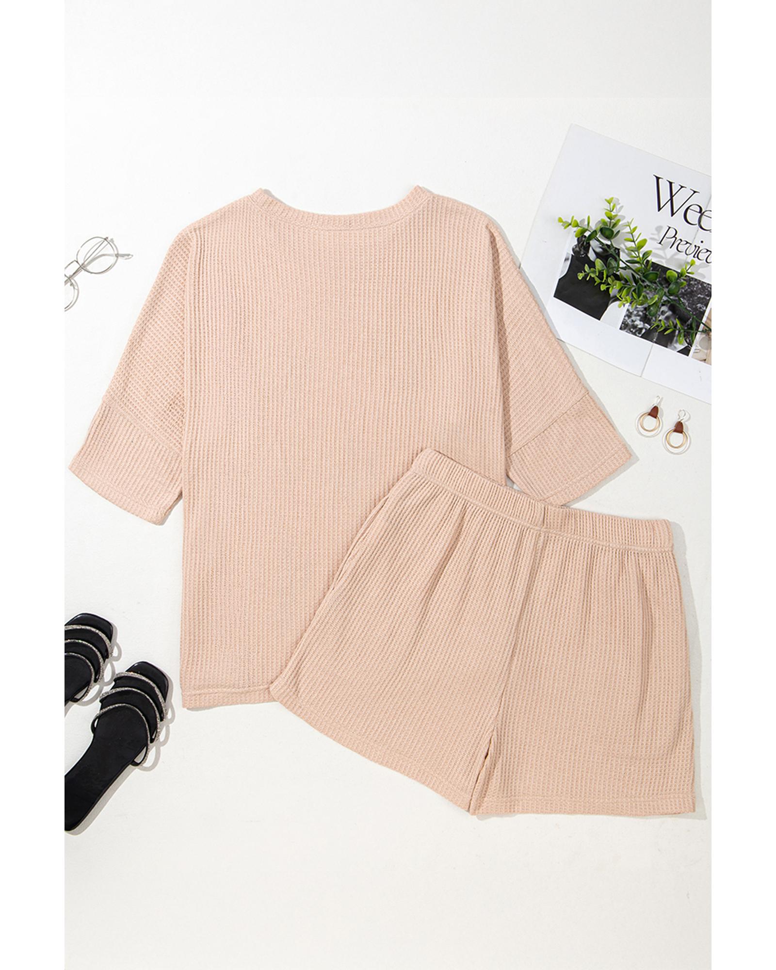 - Light French Beige Cactus Forest Waffle Half Sleeve Tee Short Set