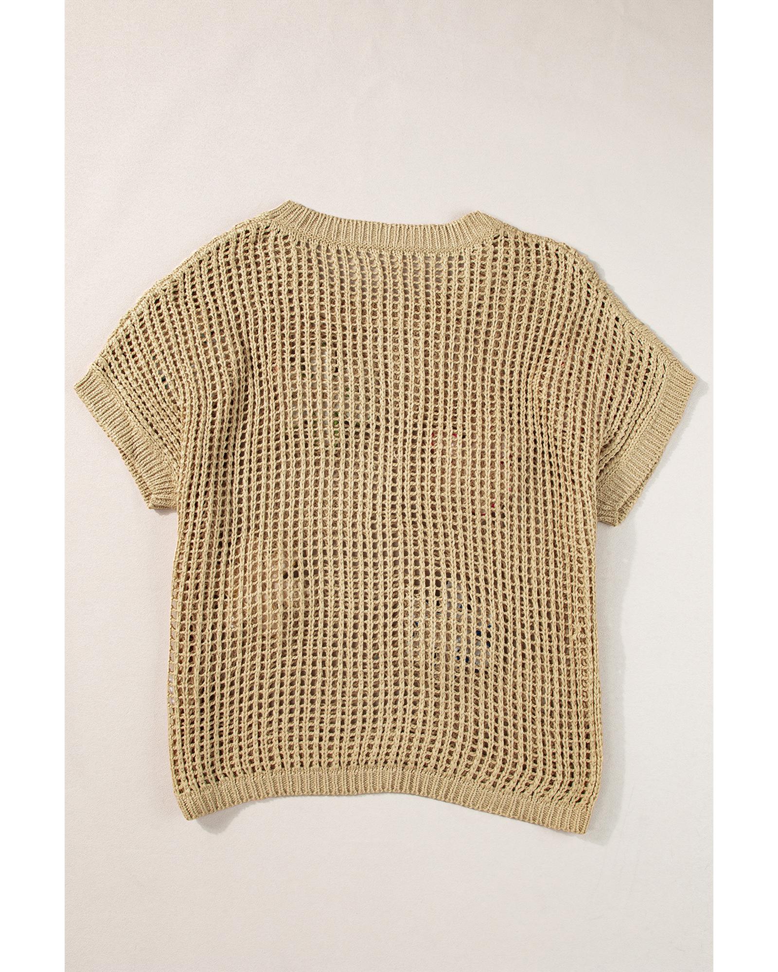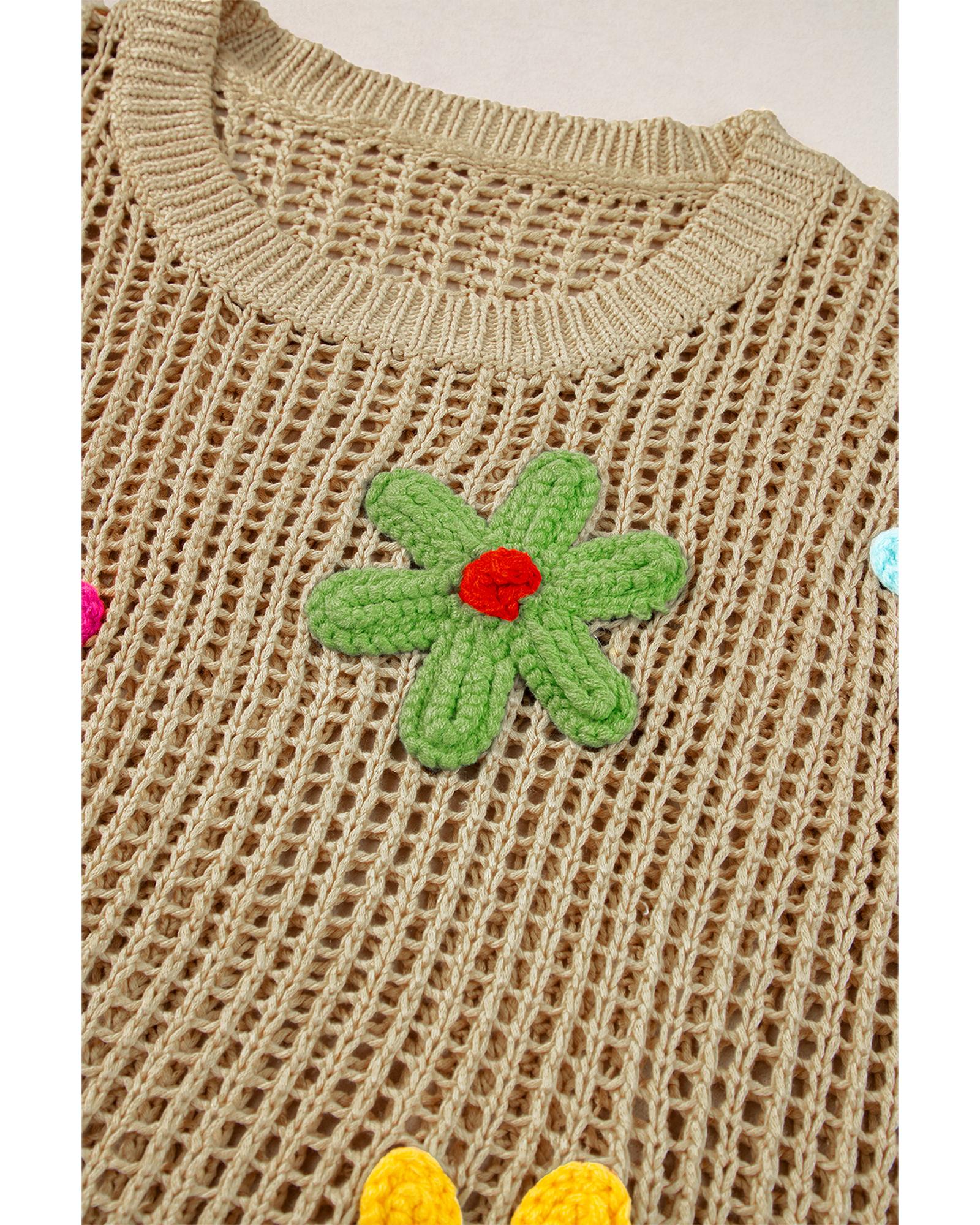 Light French Beige Crochet Flower Hollow-out Sweater T Shirt – L