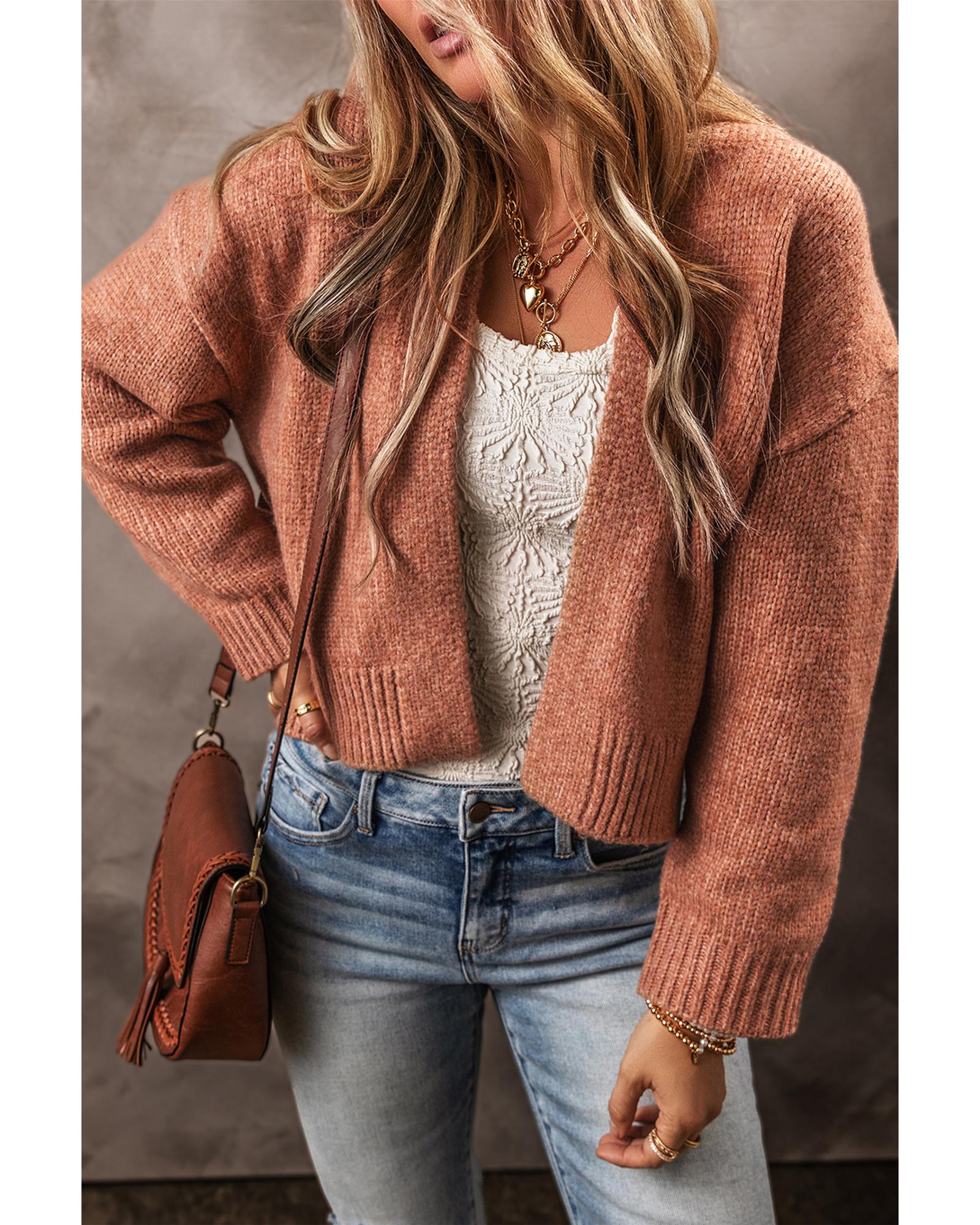 Light French Beige Drop Shoulder Open Front Cropped Cardigan – XL