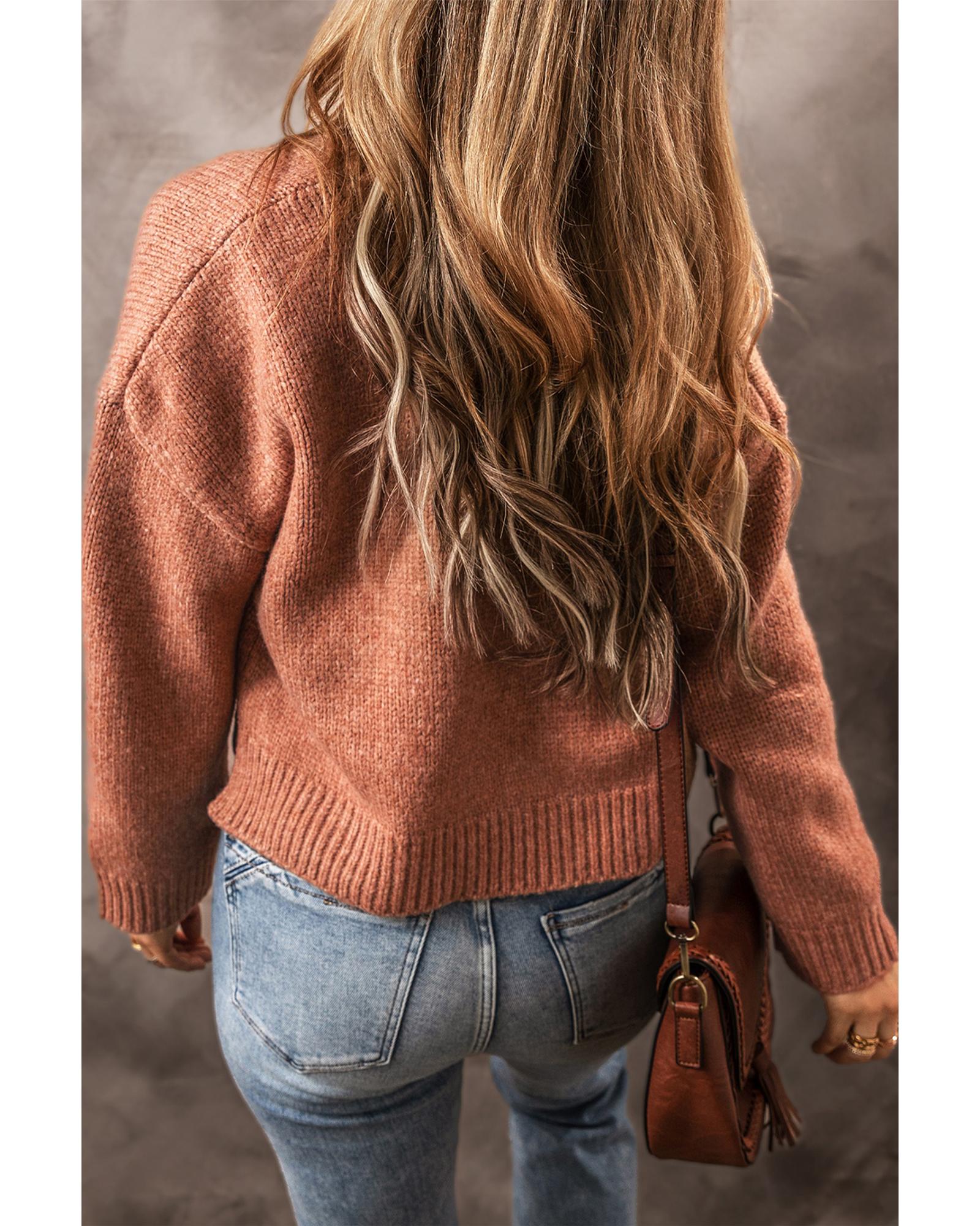 Azura Exchange Brown Pompom Color Block Open Front Cardigan - S