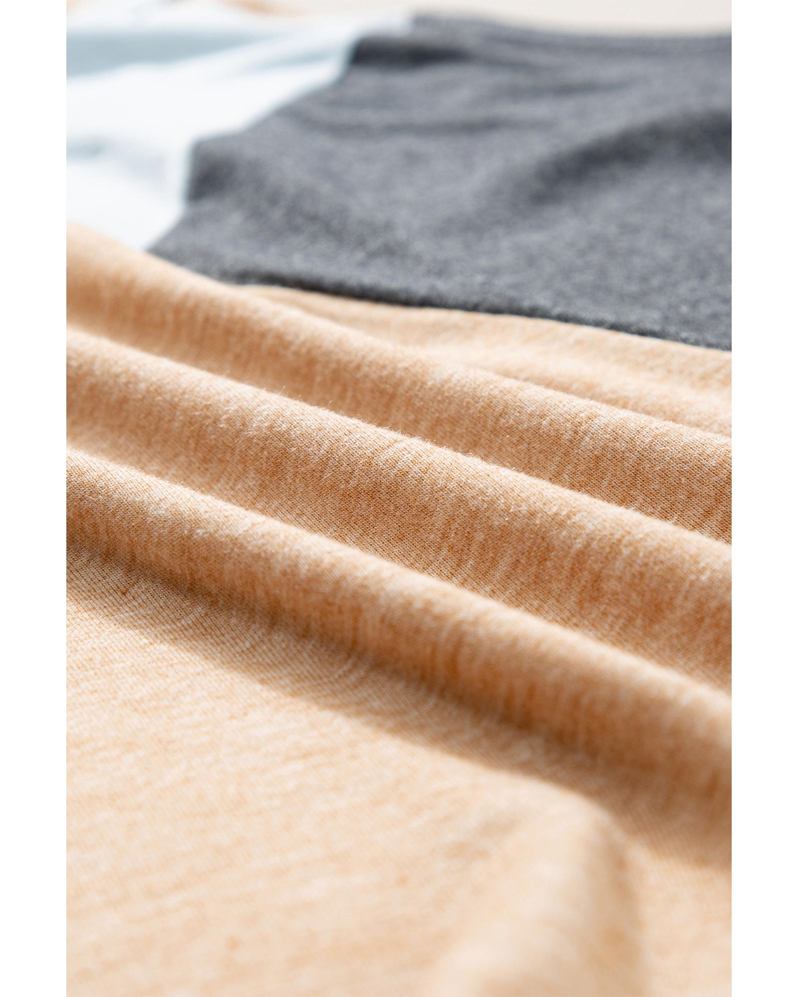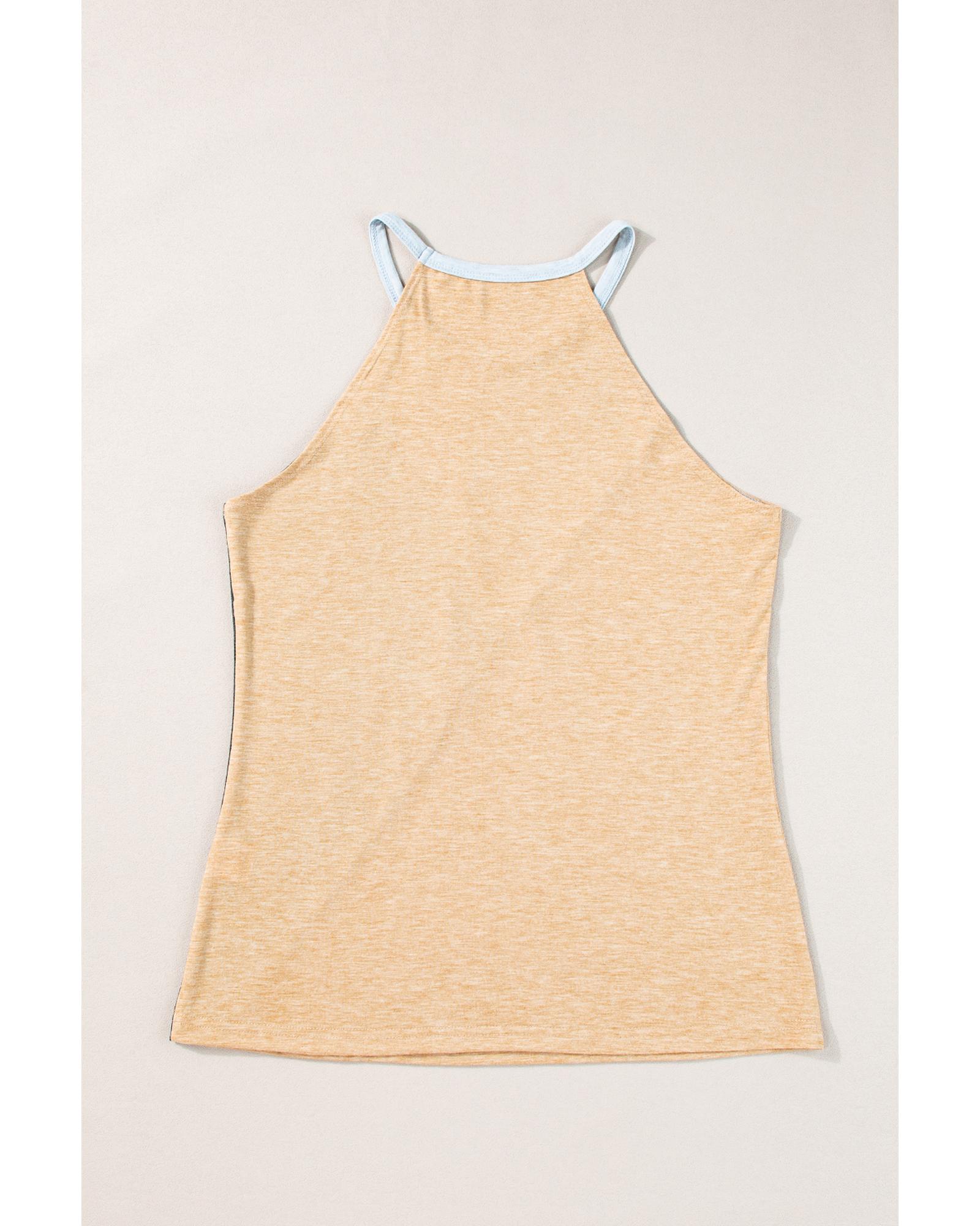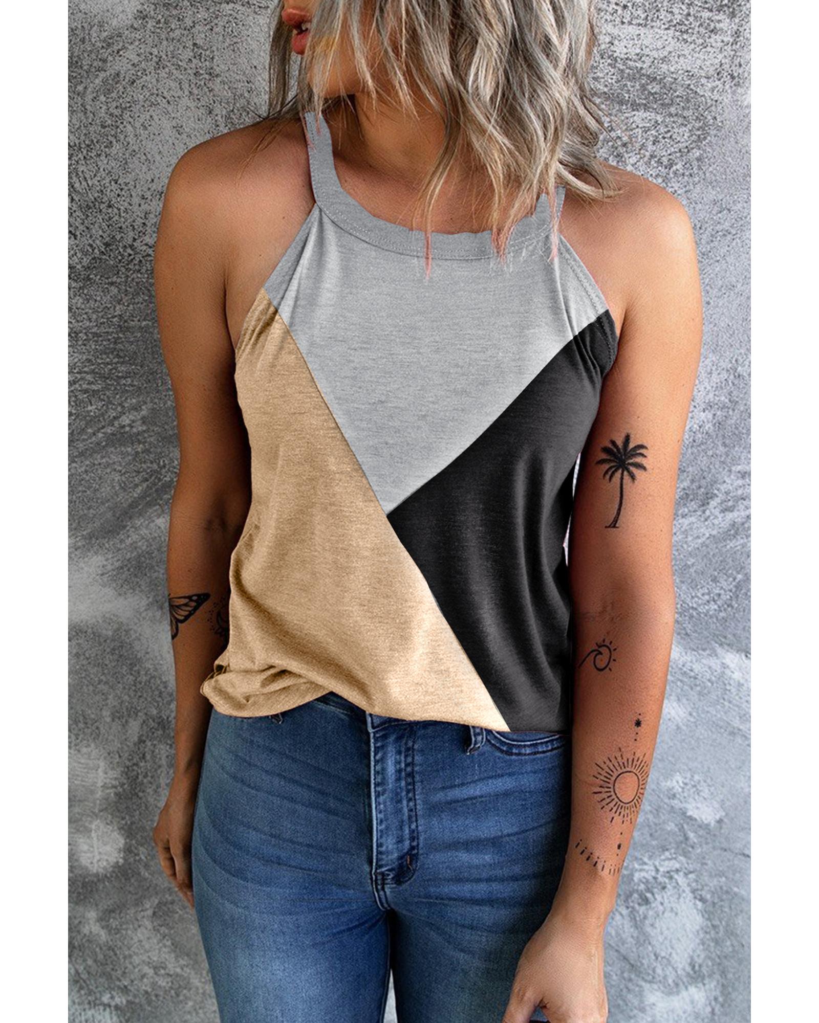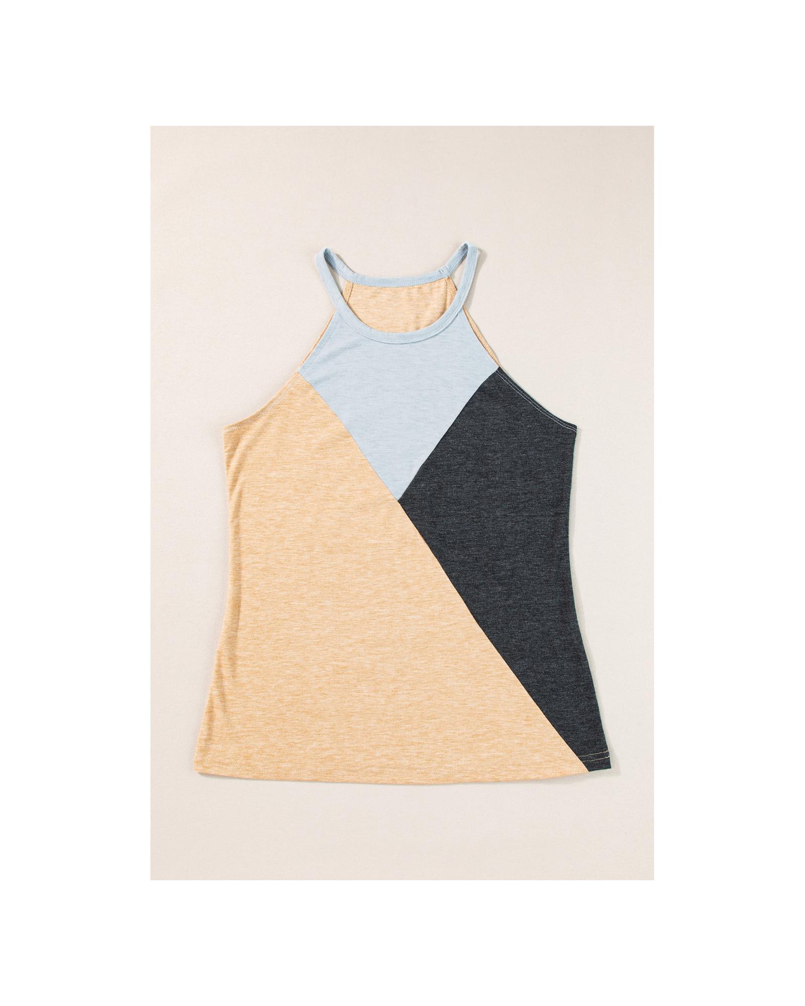 Light French Beige Geometric Color Block Sleeveless Top – L