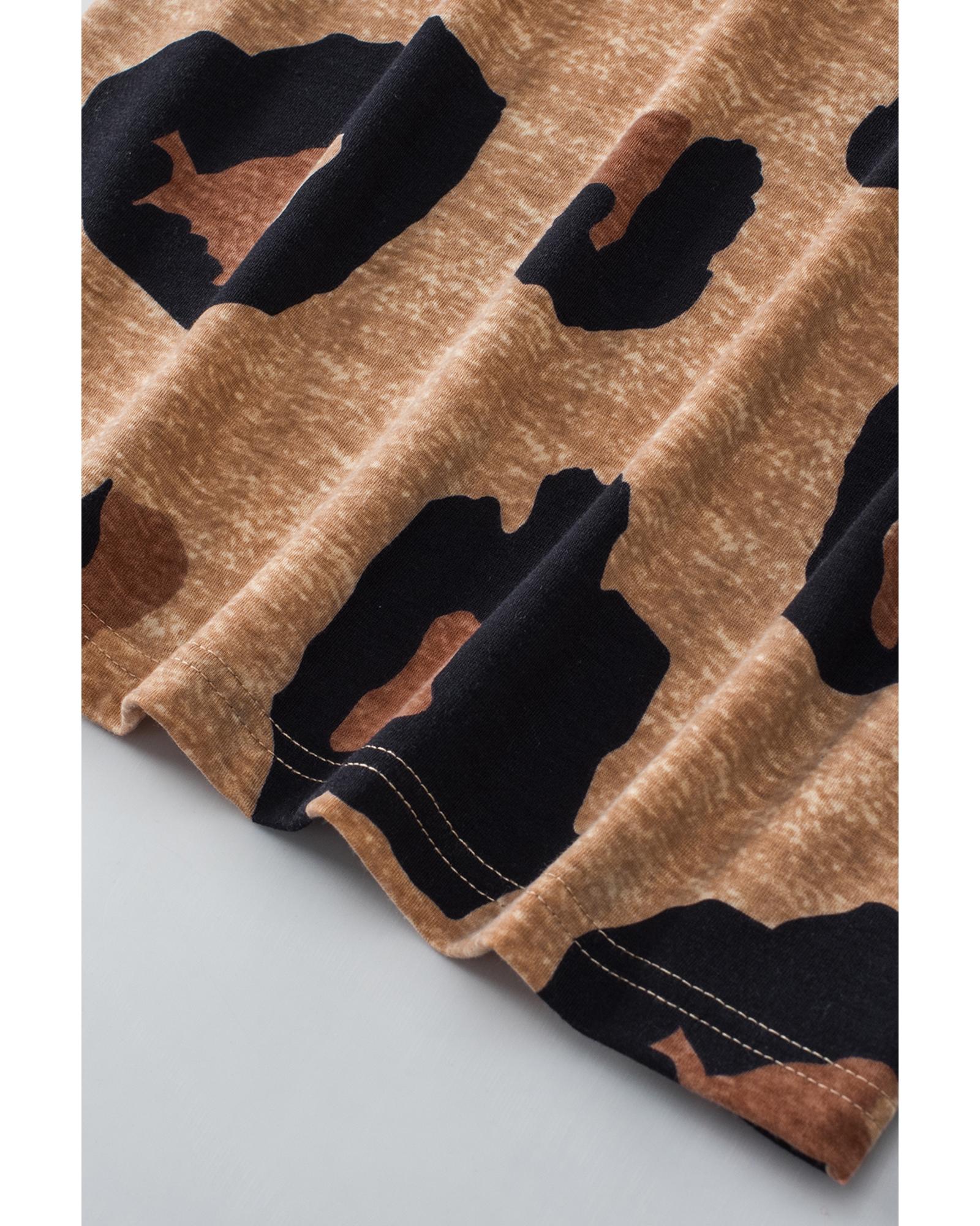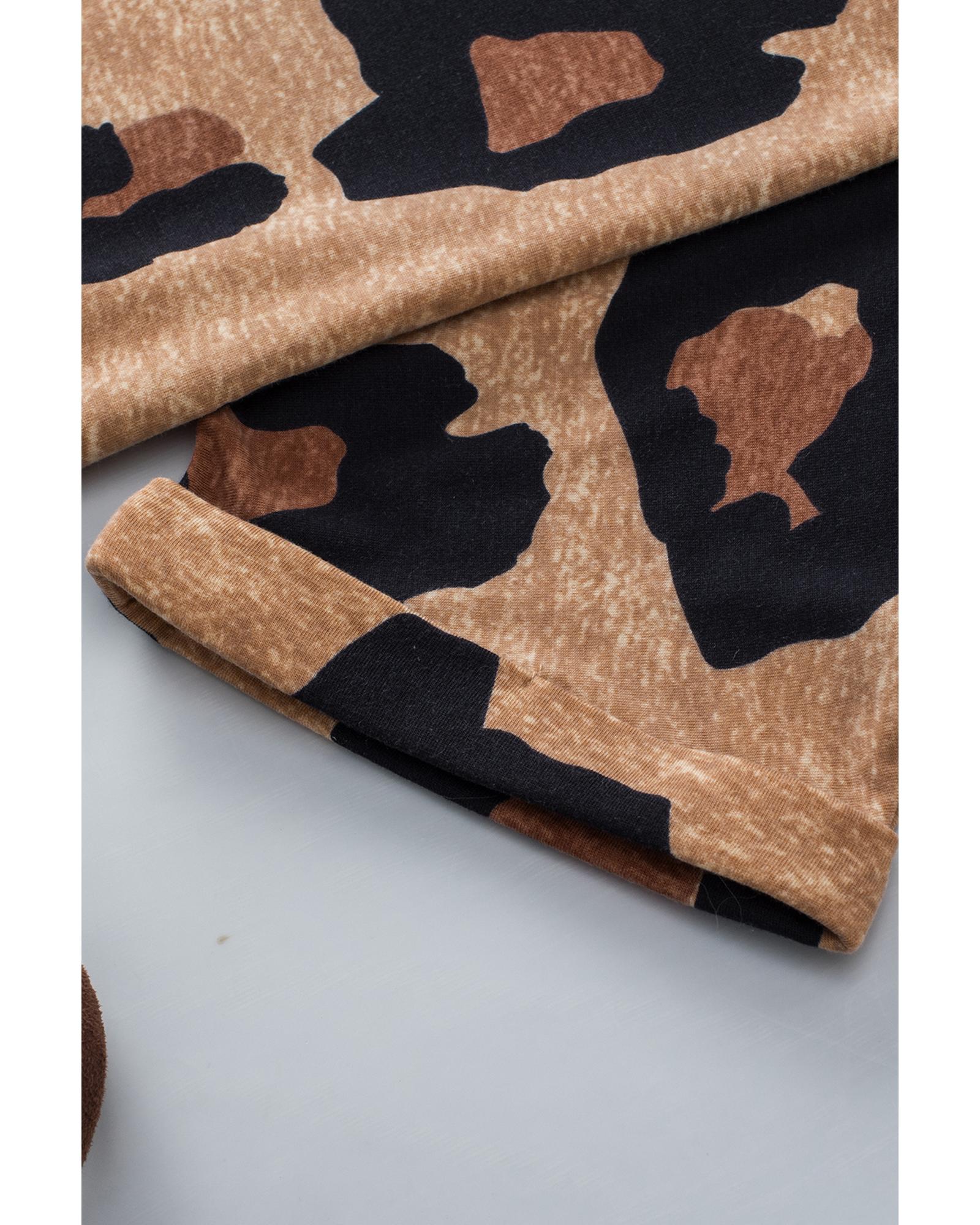 - Light French Beige Leopard Folded Short Sleeve Buttoned V Neck Blouse