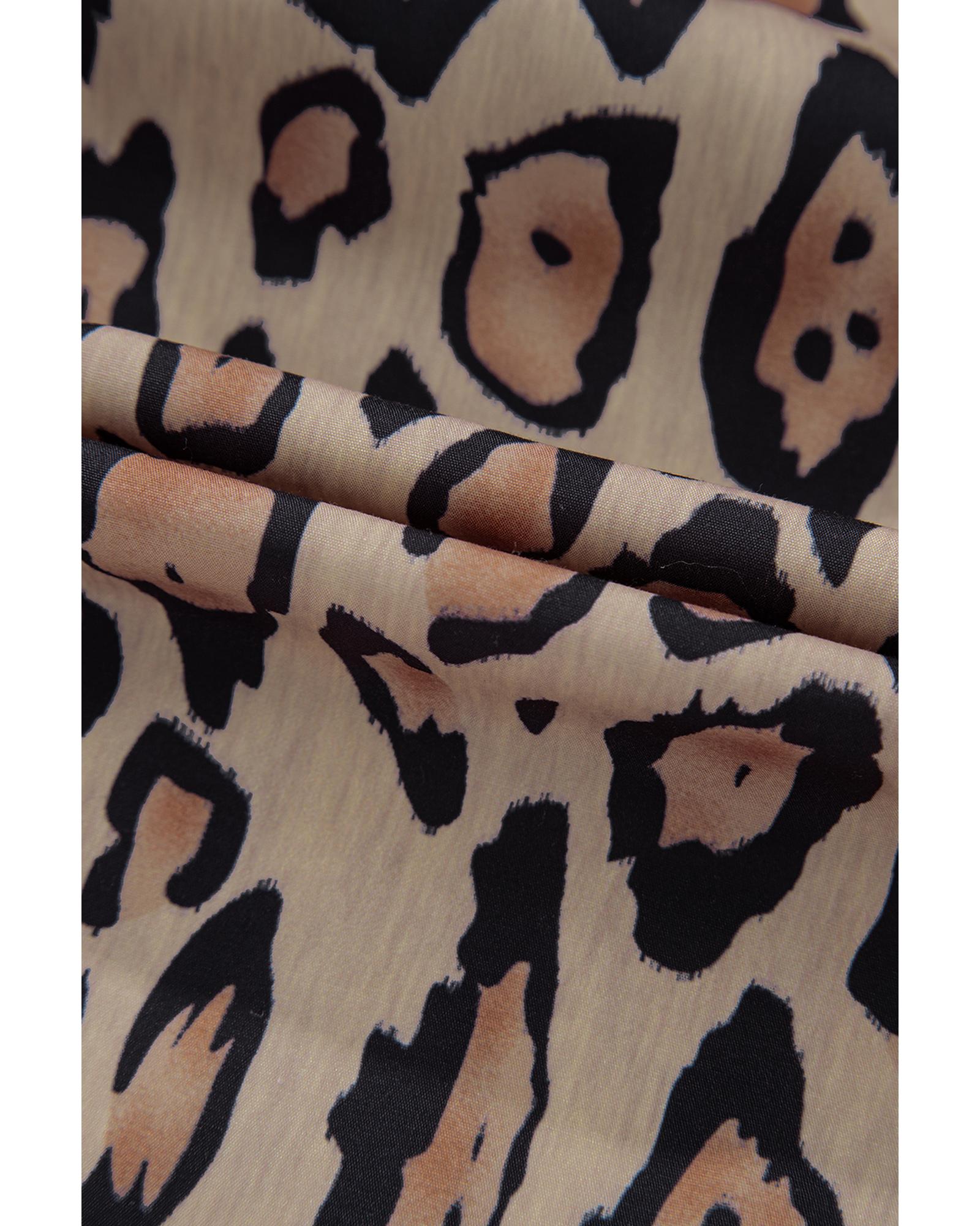 Light French Beige Oversized Leopard Print Balloon Sleeve Casual Shirt – L